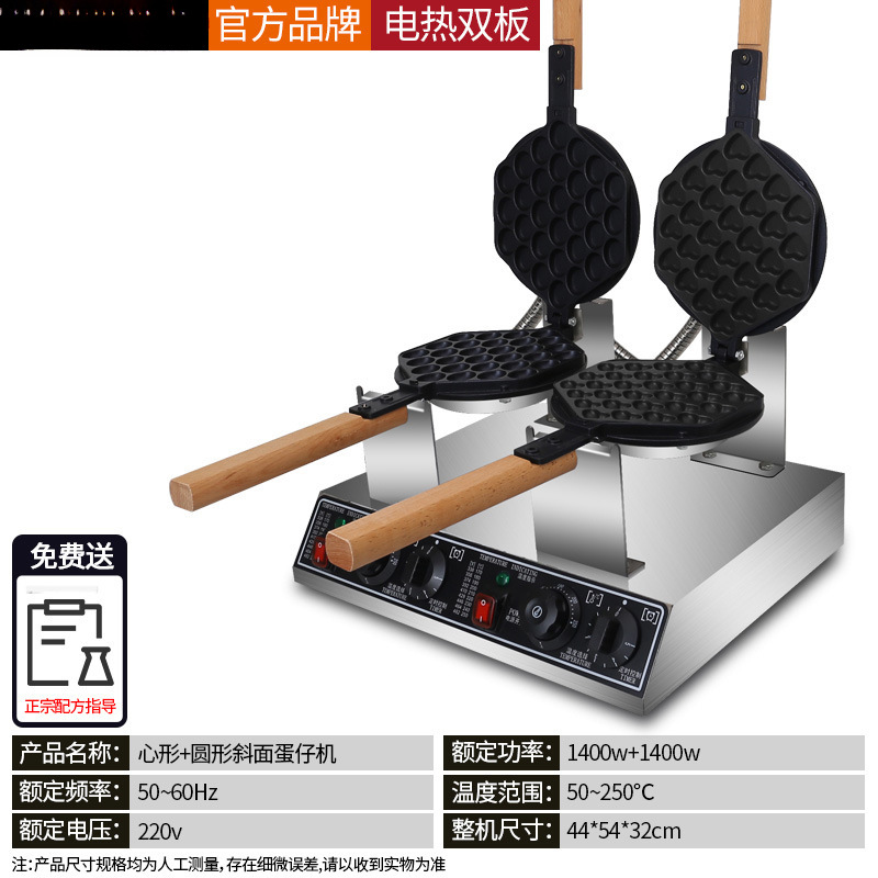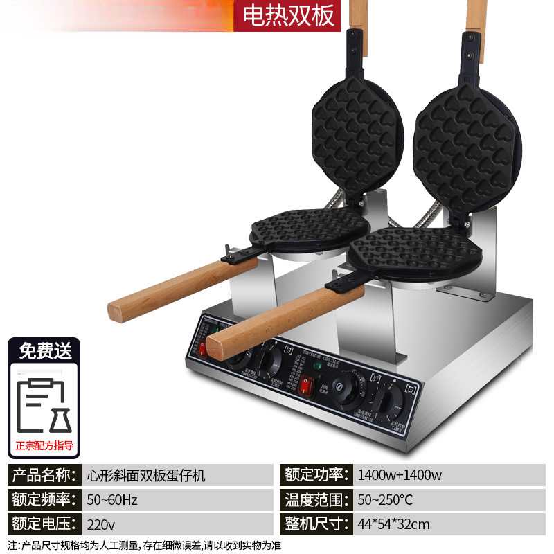 • [업그레이드 모델] 전기 이중판 하트형 계란 와플 기계 - 경사 패널