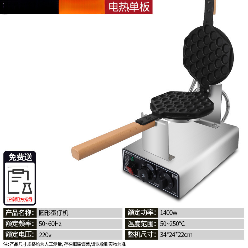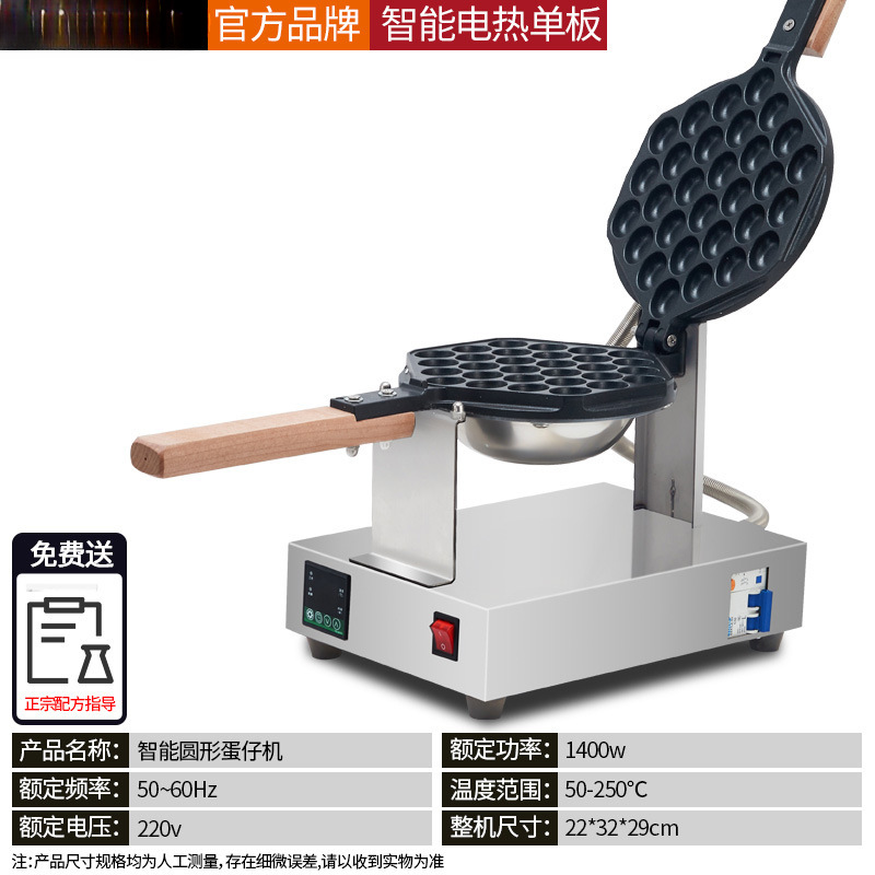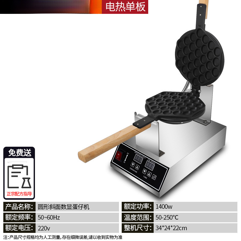 • [업그레이드 모델] 전기 원형 계란 와플 기계 - 경사 패널