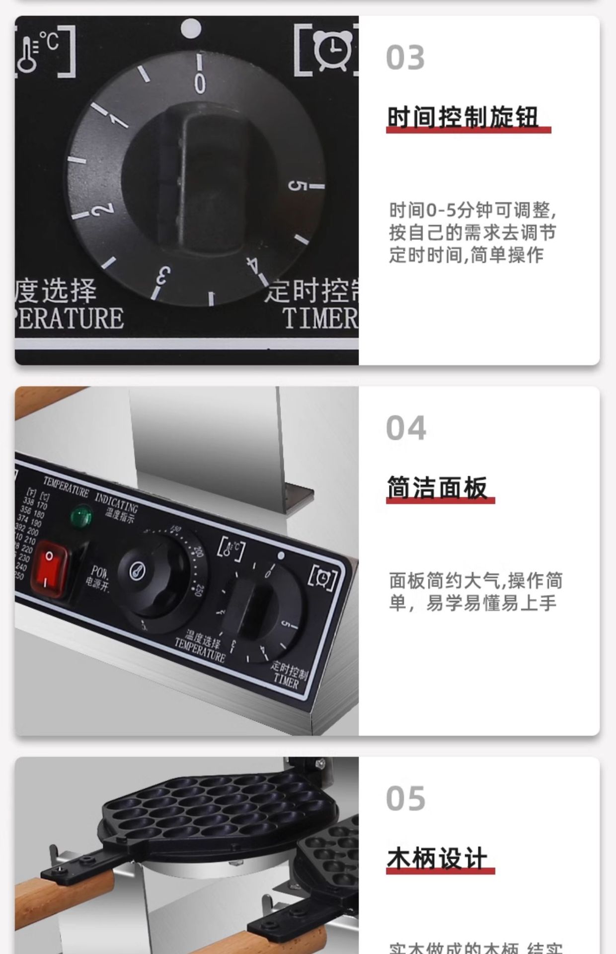 • [럭셔리 모델] 전기 디지털 디스플레이 원형 계란 와플 기계 - 경사 패널