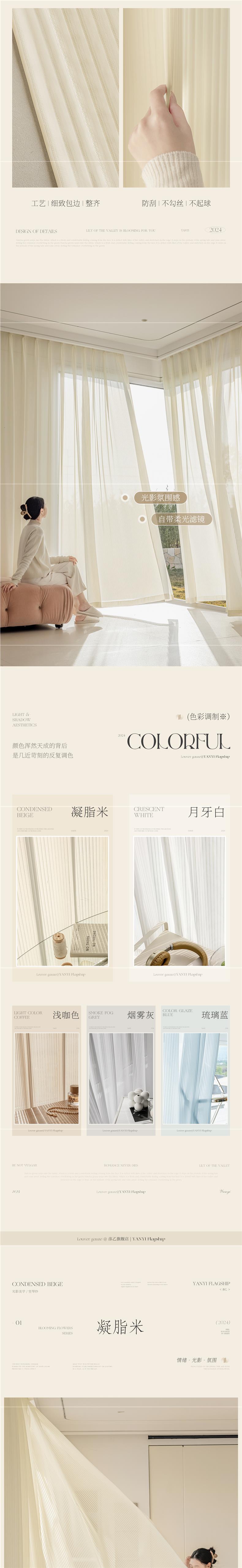 크림색 수직 루버 커튼, 투광 및 불침투성, 거실 흰색 거즈 커튼, 발코니 베드벤치 창, 흰색 창 스크린 판매스토어 가기