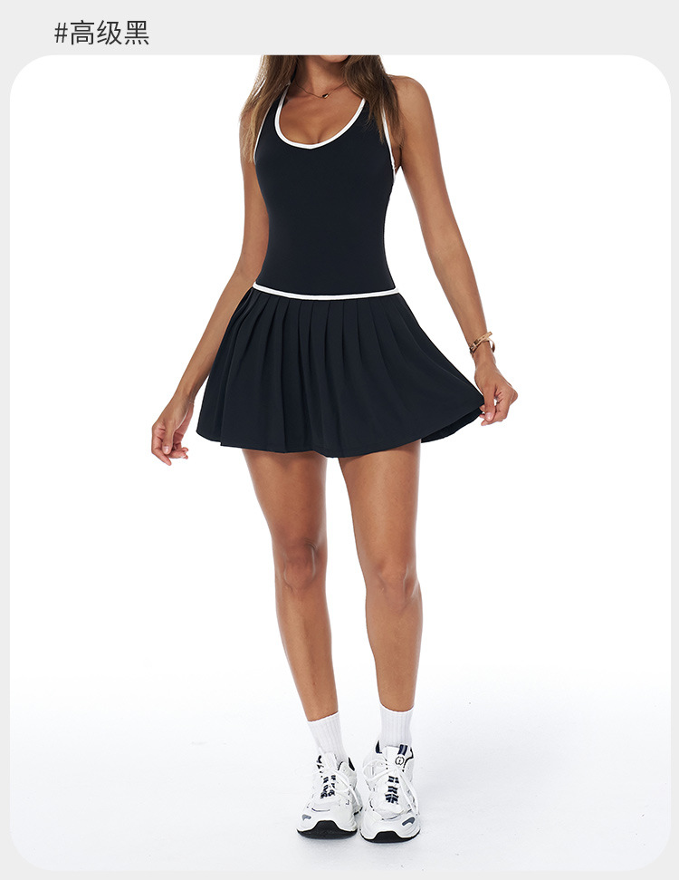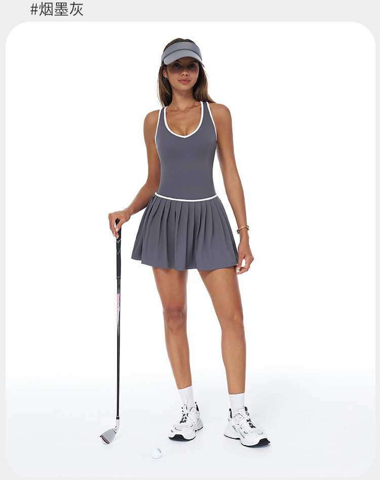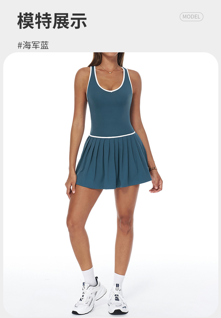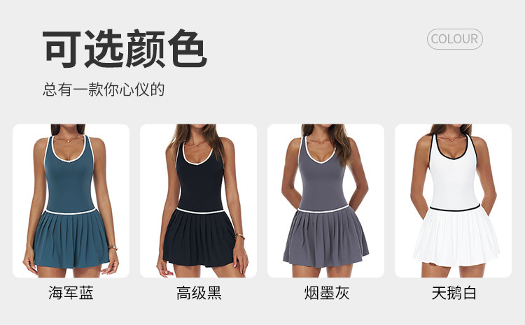 여름 여성을 위한 노출 방지 바닥 야외 달리기 피트니스 테니스 스커트 여성을 위한 국경 간 누드 가짜 투피스 스포츠 드레스 3092
