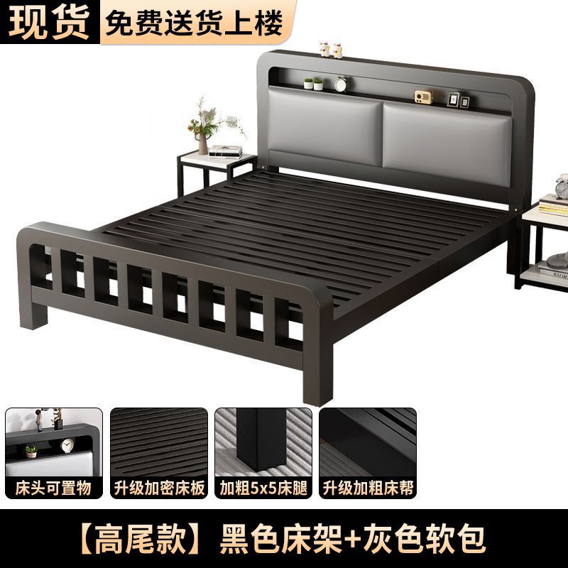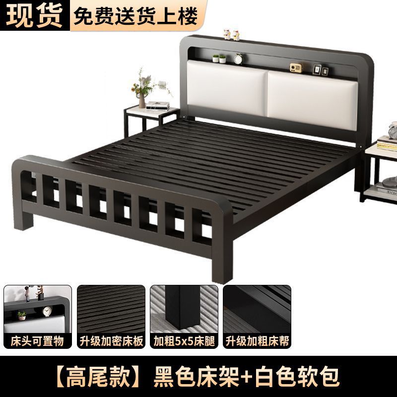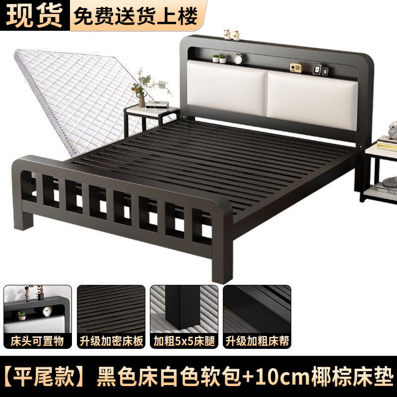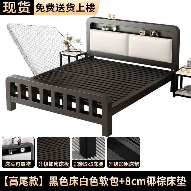 두꺼운 무소음 1.8m 철제 침대, 강화된 두꺼운 더블 침대, 1m 가정용 스테인리스 임대용 철제 침대