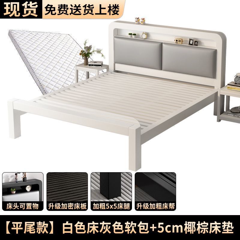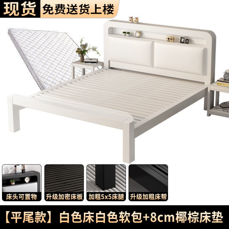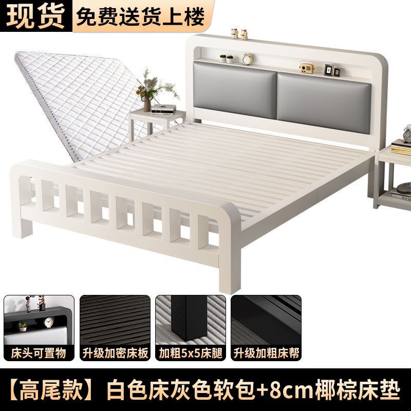 • 하이엔드 모델 - 밀크 화이트 네이키드 침대 + 8cm 매트리스 [두꺼운 회색 소프트 등받이]