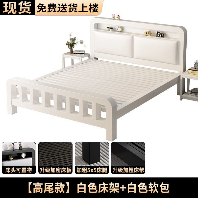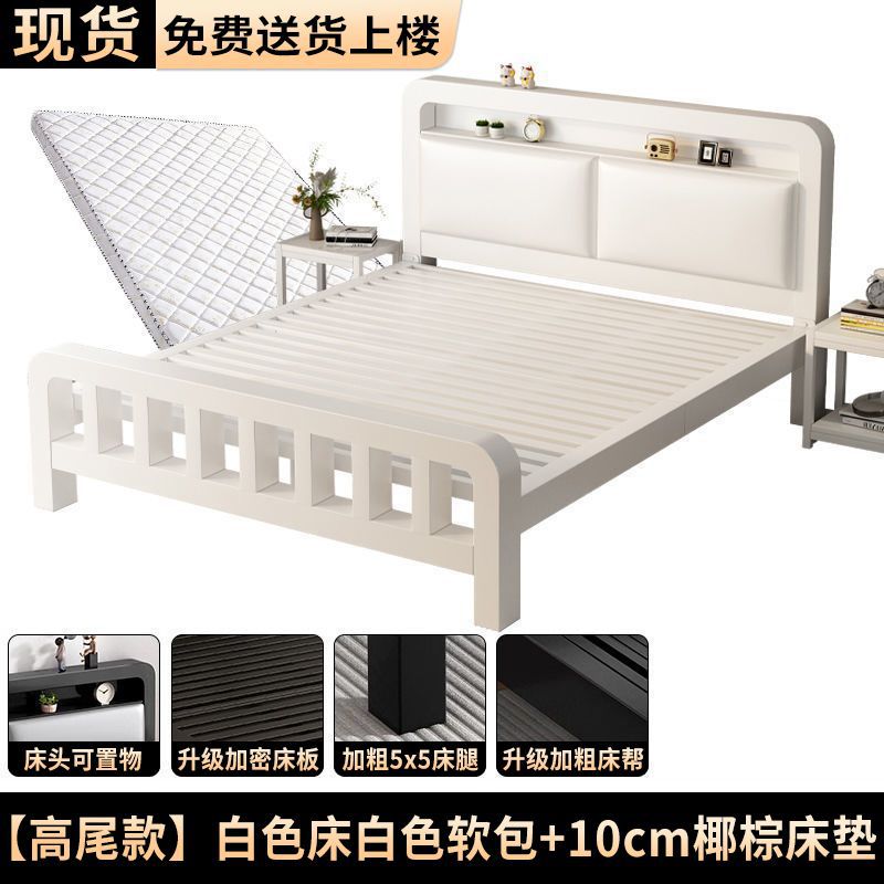 • 하이엔드 모델 - 밀크 화이트 네이키드 침대 + 8cm 매트리스 [두꺼운 화이트 소프트 등받이]