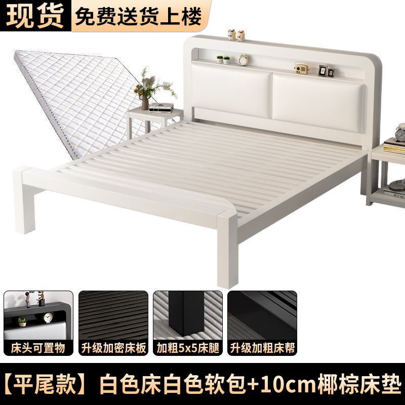 • 플랫테일 모델 - 밀크 화이트 네이키드 침대 + 8cm 매트리스 [두꺼운 화이트 소프트 등받이]