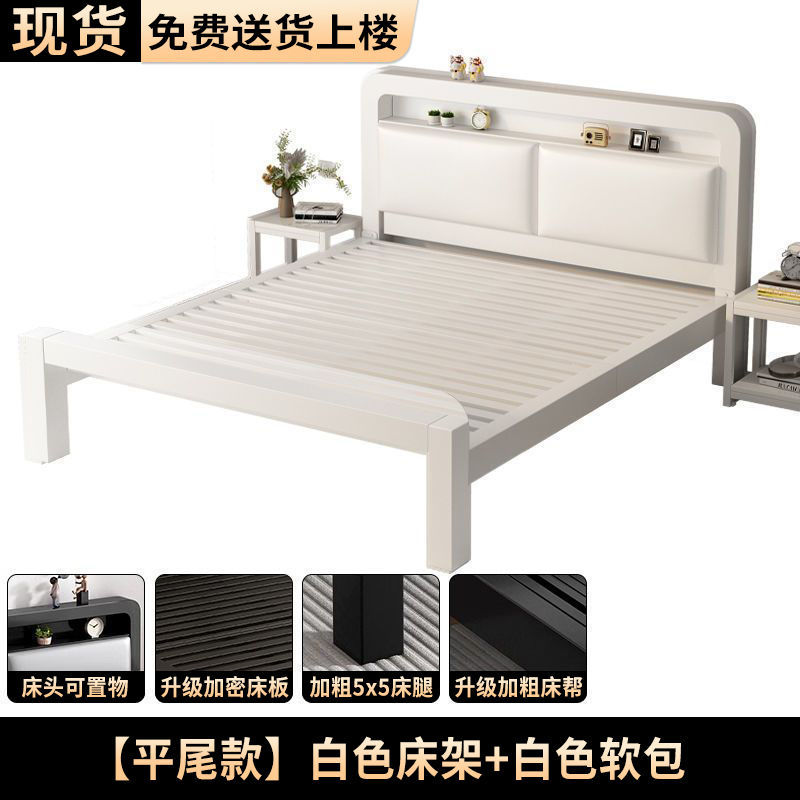 • 플랫테일 스타일 - 밀크 화이트 네이키드 침대 [두꺼운 흰색 소프트 등받이]