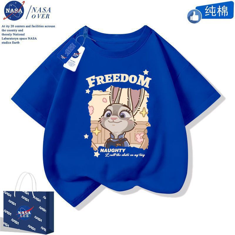 NASA 공동 브랜드 귀여운 주디 순면 반팔 티셔츠 소년 소녀용 만화 Zootopia 프린트 트렌디 탑스토어 가기