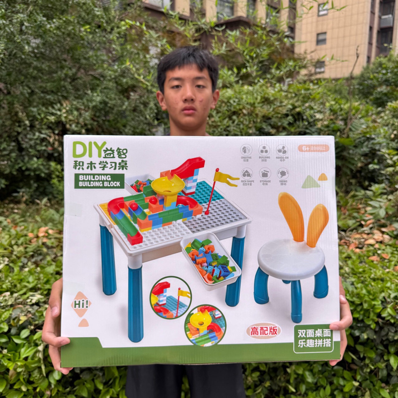 레고 빌딩 블록 테이블과 호환 가능, 대형 입자 퍼즐 장난감, 어린이 다기능 학습 및 보관 겸용 장난감 테이블스토어 가기