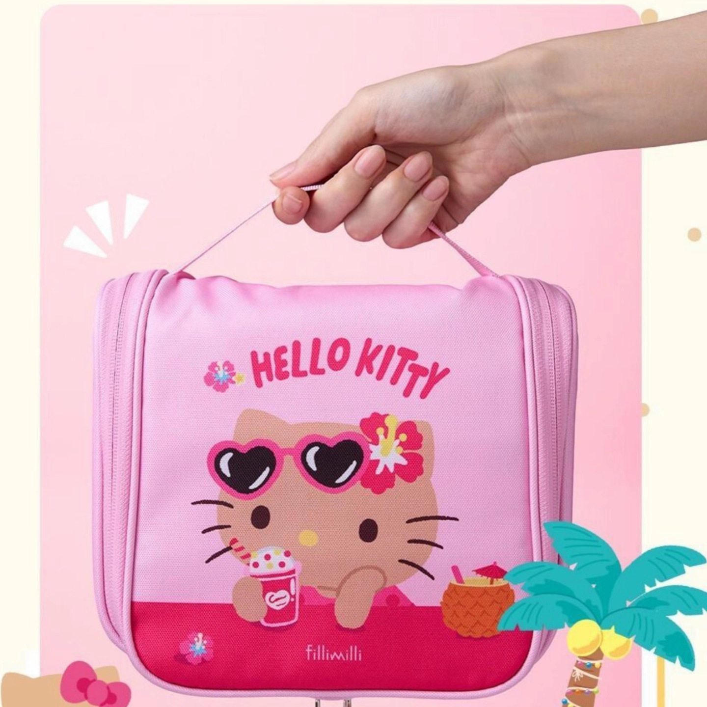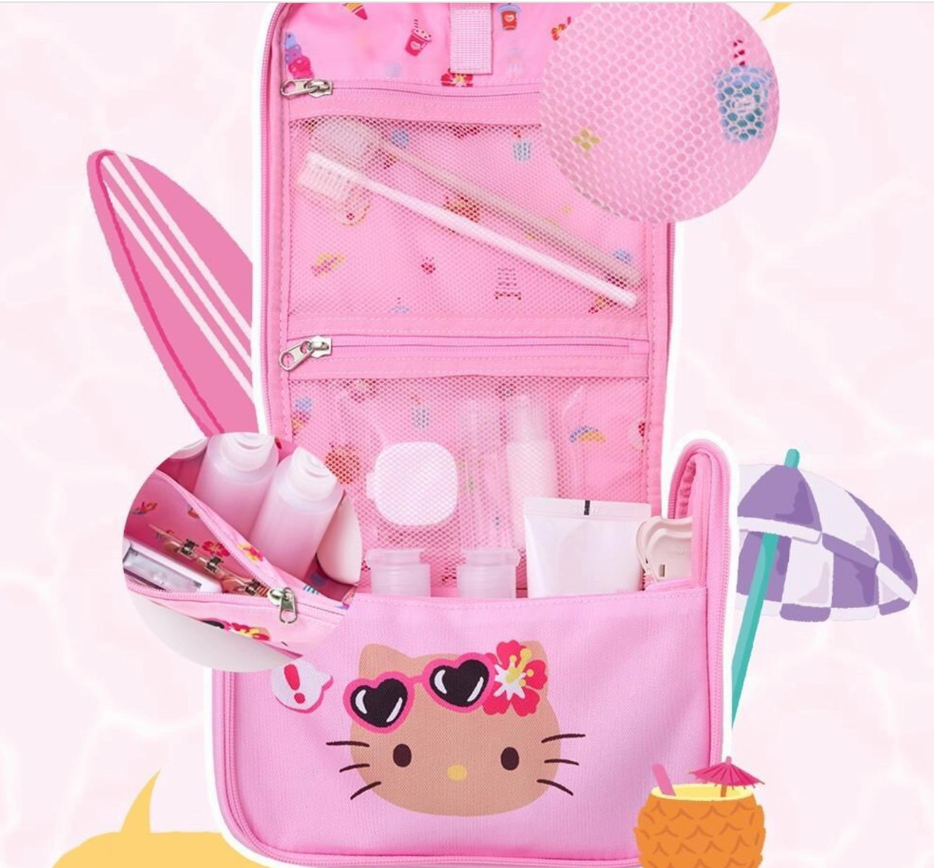 • KT 고양이 휴대용 화장품 가방 (핑크)