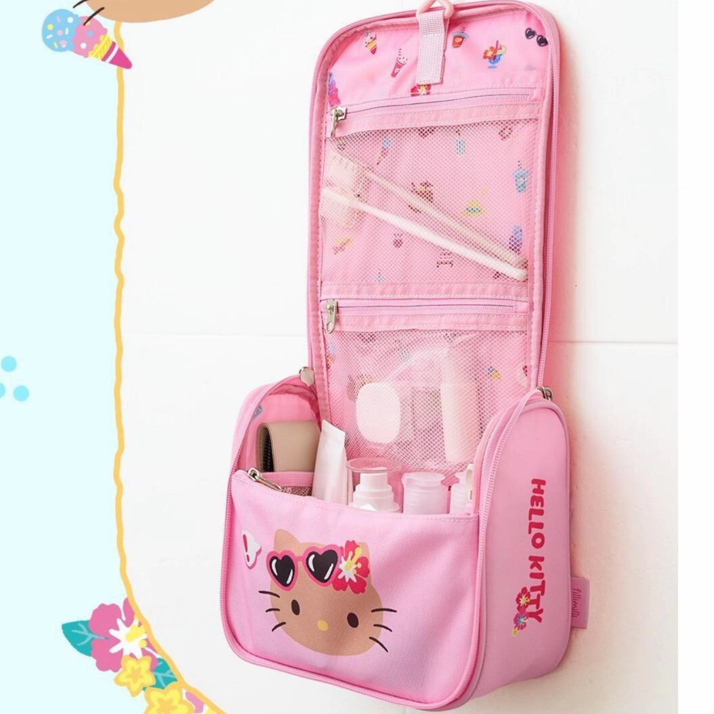 한국과 동일한 스타일의 귀여운 KT 고양이 세면도구 가방, 휴대용 소품 수납 가방, 화장품 가방, 여행용 신제품스토어 가기