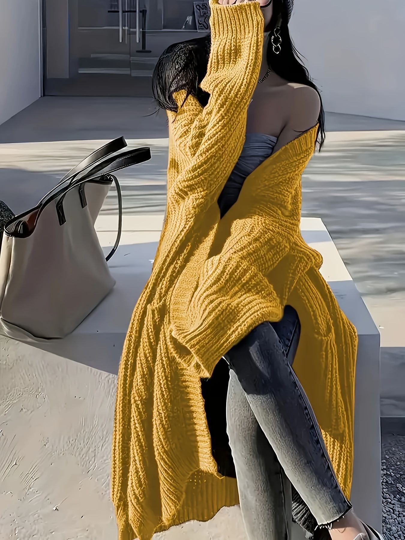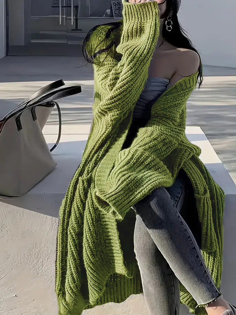 여성용 스웨터 재킷 2025 가을 겨울 게으른 트렌드 중간 길이 무릎 길이 루즈하고 다재다능한 기본 긴팔 니트 가디건