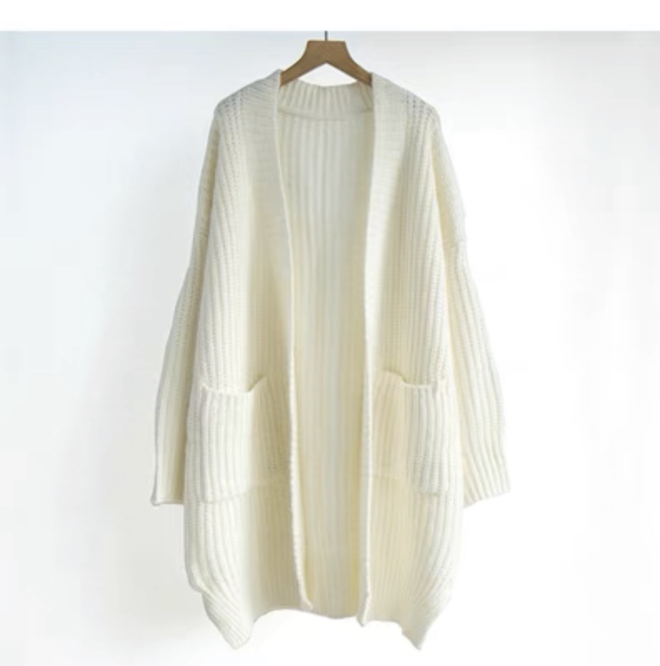 여성용 스웨터 재킷 2025 가을 겨울 게으른 트렌드 중간 길이 무릎 길이 루즈하고 다재다능한 기본 긴팔 니트 가디건스토어 가기