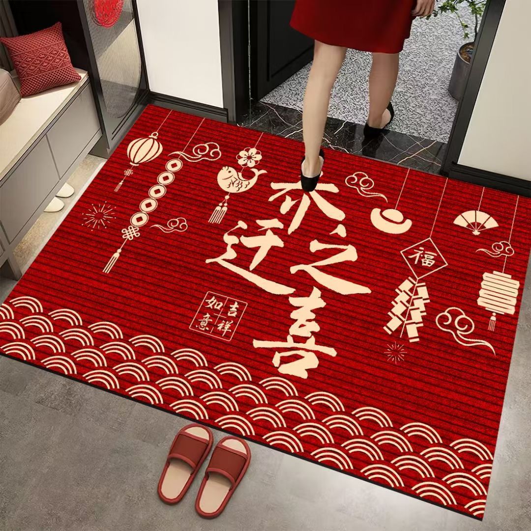 새로운 부드러운 규조토 진흙 빨간색 축제 중국 스타일 입구 바닥 매트 입구 카펫 문 발 매트 내마모성스토어 가기