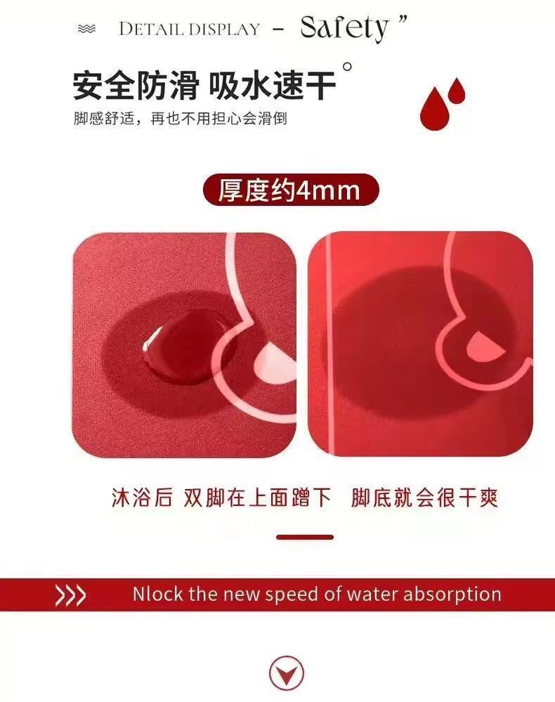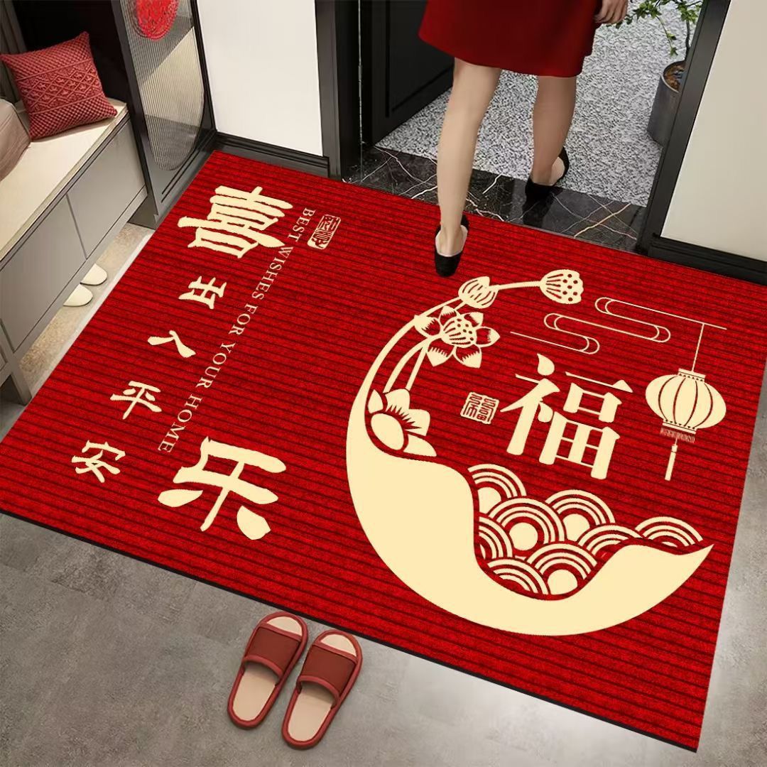 새로운 부드러운 규조토 진흙 빨간색 축제 중국 스타일 입구 바닥 매트 입구 카펫 문 발 매트 내마모성