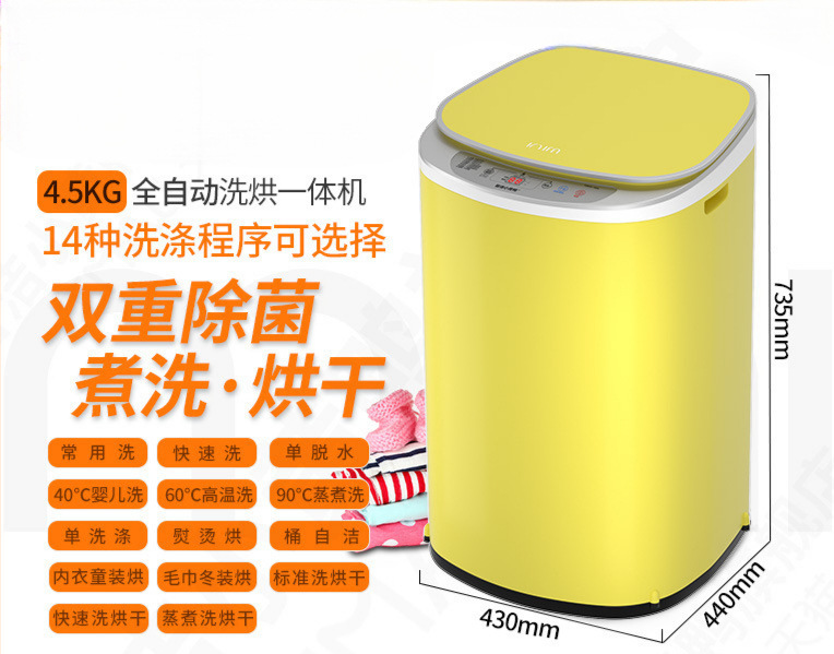 Zhijie Little Yellow Duck 아기 미니 세탁기 살균 소형 가정용 소형 완전 자동 아기 특수 세탁 및 건조기스토어 가기