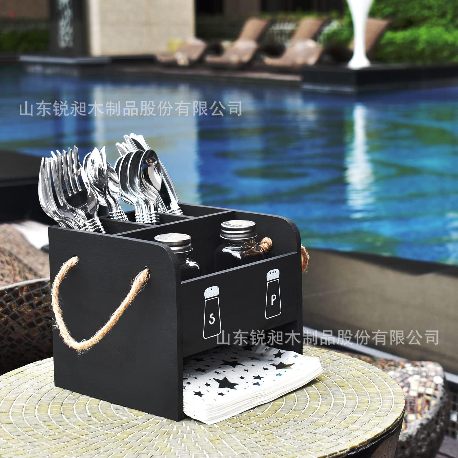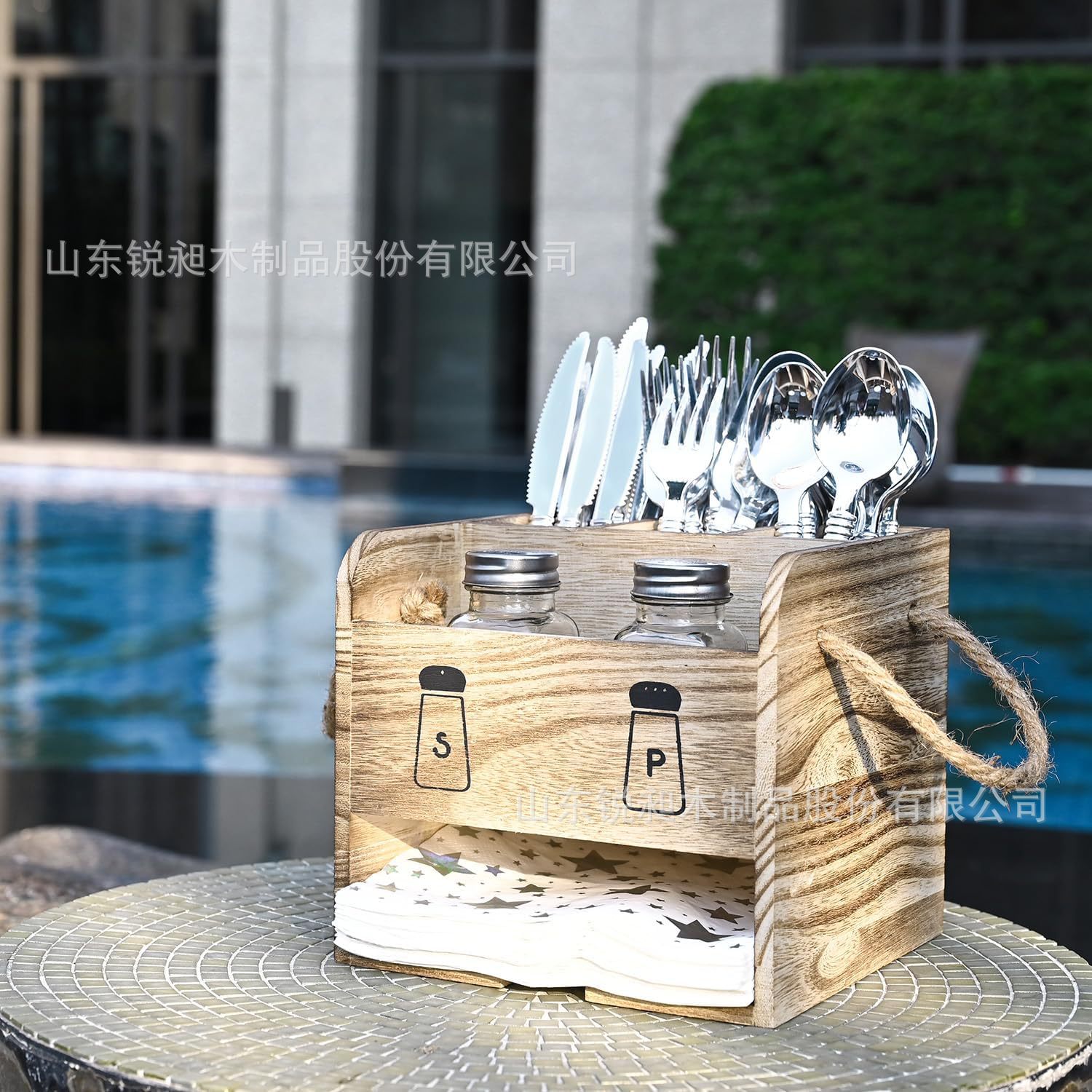 수제 원목 데스크탑 칼과 포크 보관 상자 주방 조리대 식기 정리 상자 레스토랑 젓가락과 숟가락 보관 상자스토어 가기