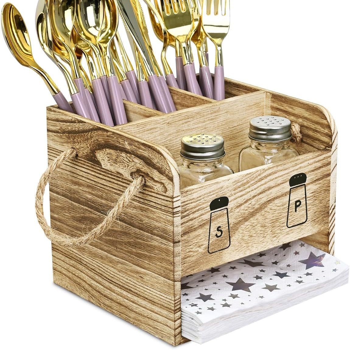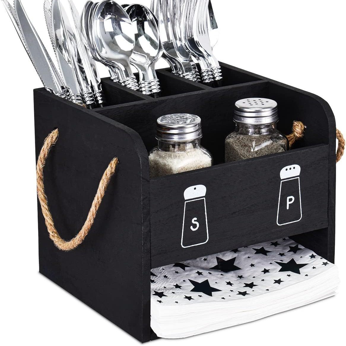 수제 원목 데스크탑 칼과 포크 보관 상자 주방 조리대 식기 정리 상자 레스토랑 젓가락과 숟가락 보관 상자