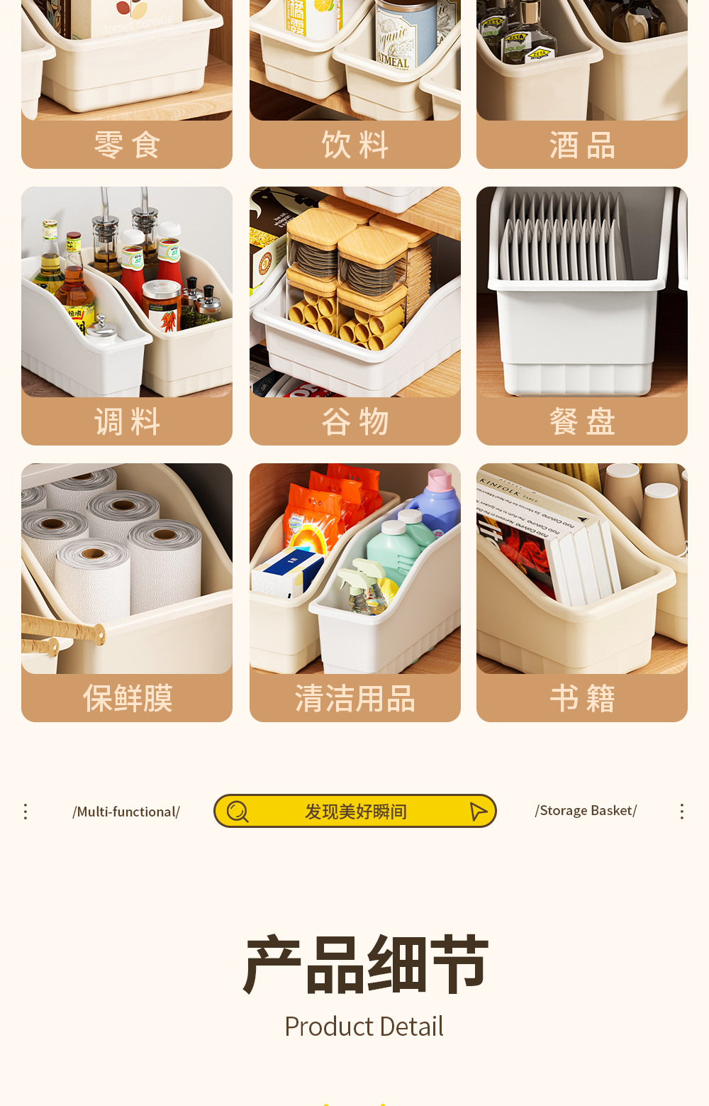 다양한 용도로 사용할 수 있는 슬라이딩 휠이 있는 맞춤형 Tem 캐비닛 보관 바구니, 스낵 및 조미료 보관 바구니, 경사진 주방 보관 상자스토어 가기