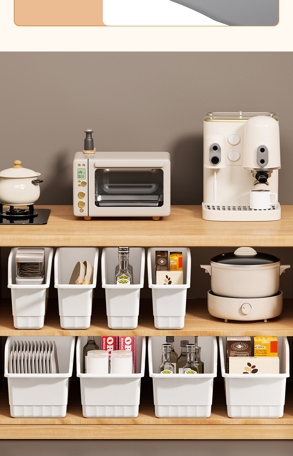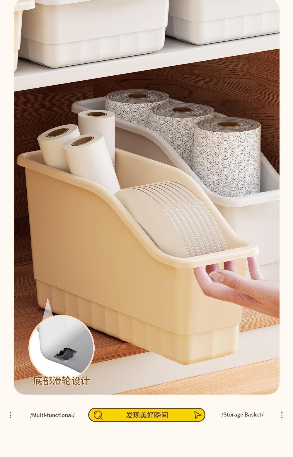 다양한 용도로 사용할 수 있는 슬라이딩 휠이 있는 맞춤형 Tem 캐비닛 보관 바구니, 스낵 및 조미료 보관 바구니, 경사진 주방 보관 상자