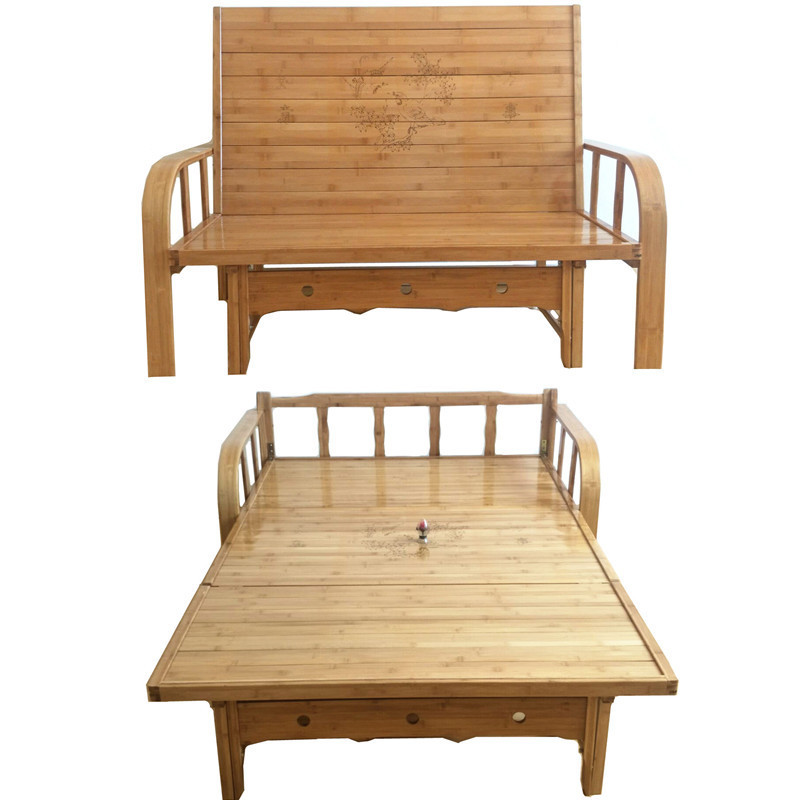 접이식 소파 베드 이중 목적 대나무 침대 구식 낮잠 침대 가정용 1.5m 소형 아파트 발코니 다기능 라운지 J&스토어 가기