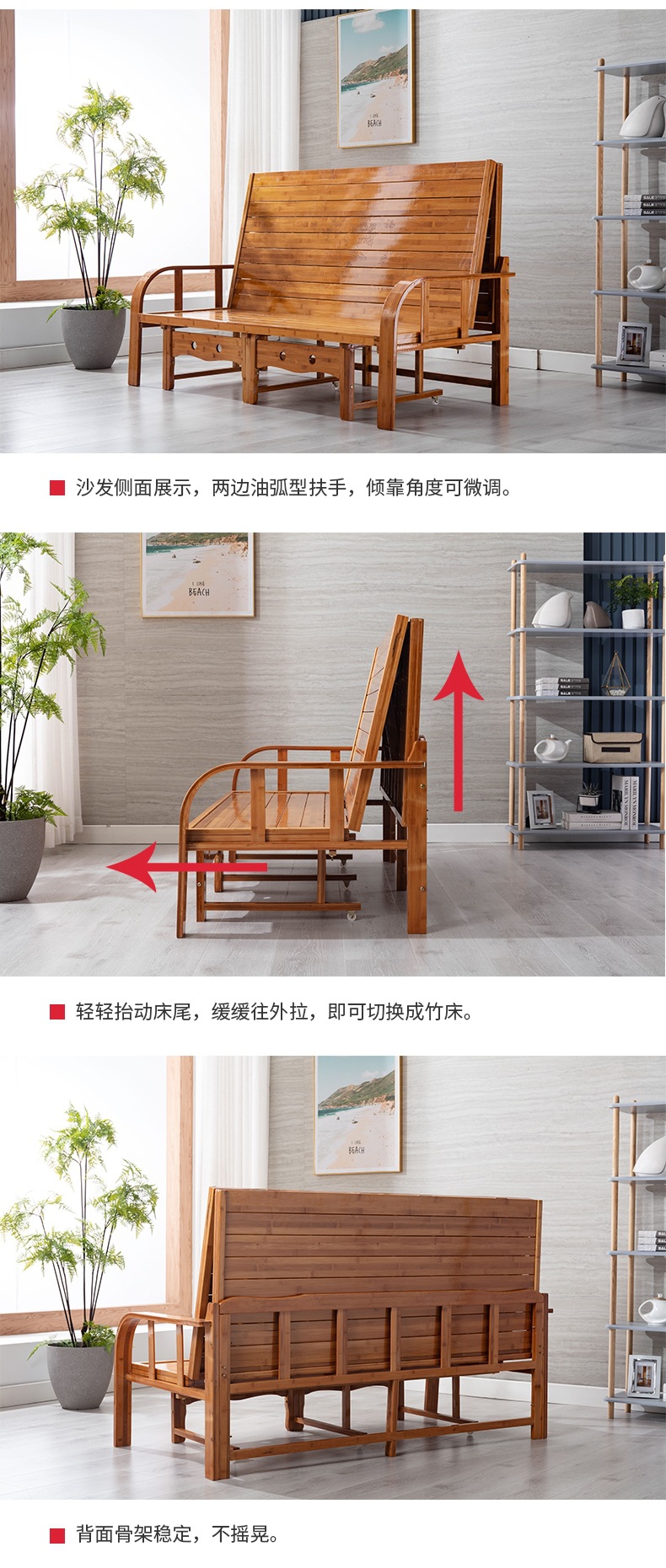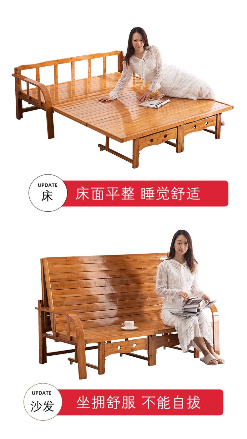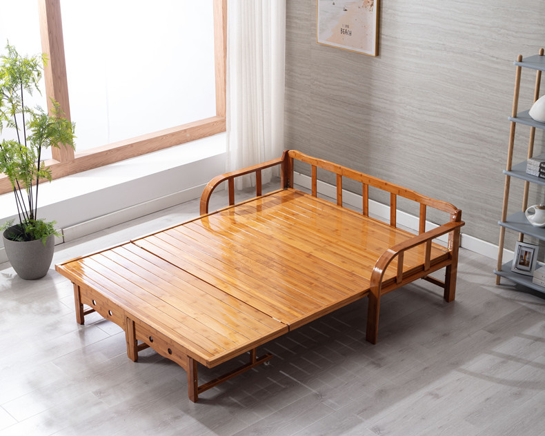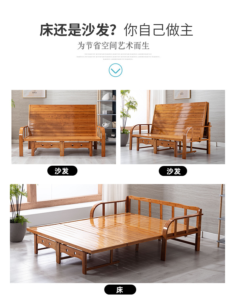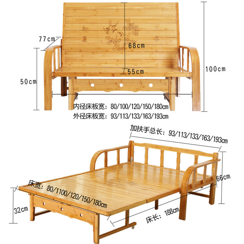접이식 소파 베드 이중 목적 대나무 침대 구식 낮잠 침대 가정용 1.5m 소형 아파트 발코니 다기능 라운지 J&