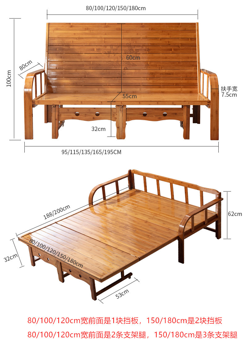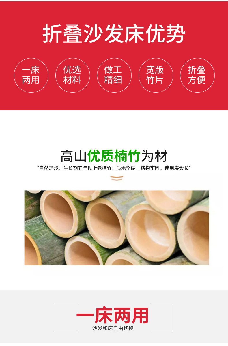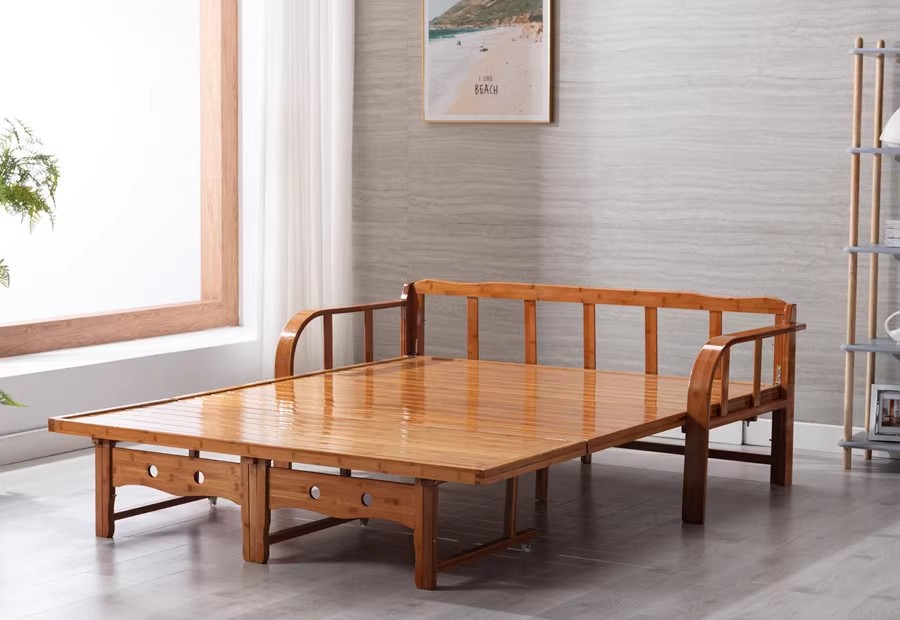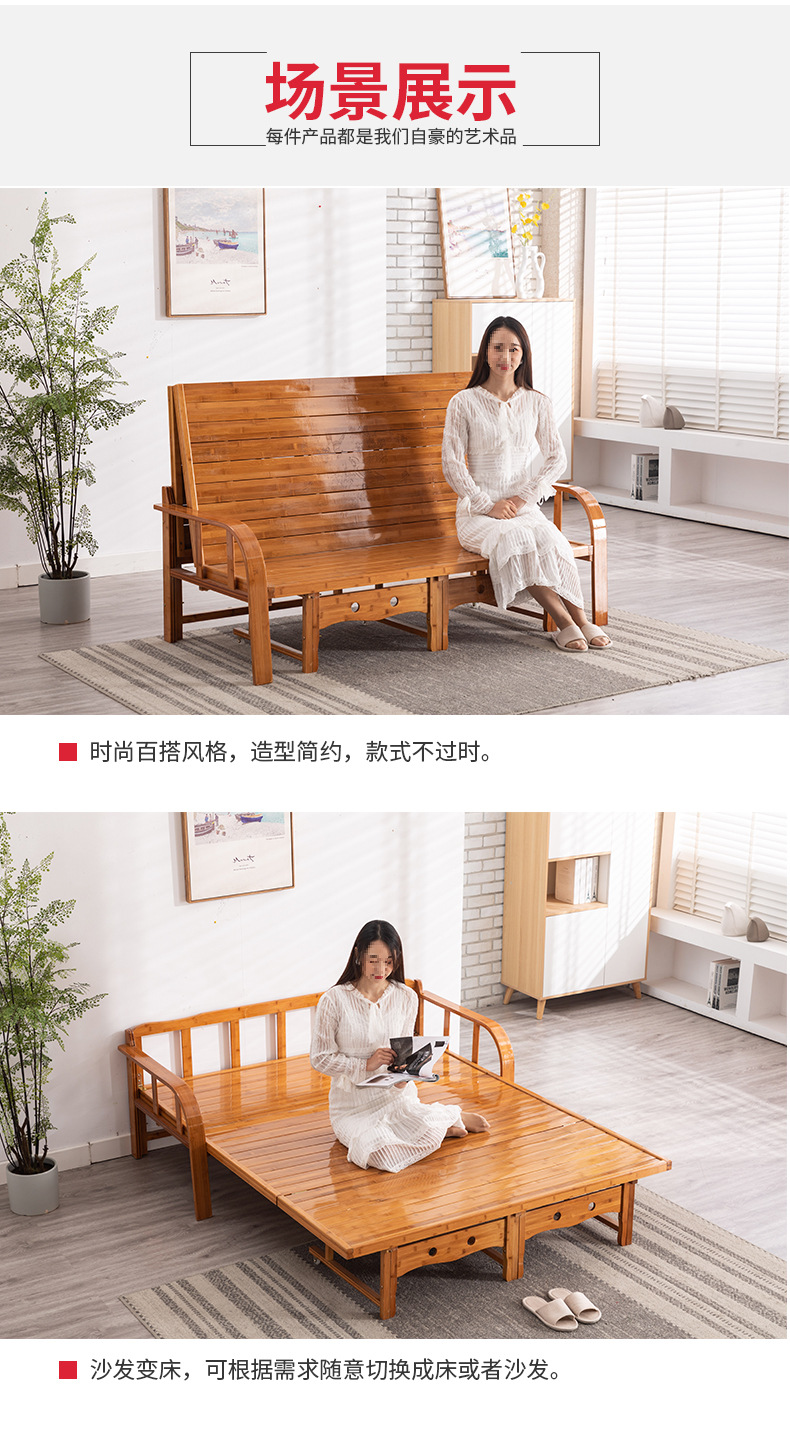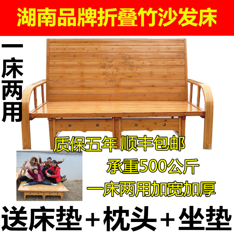 접이식 소파 베드 이중 목적 대나무 침대 구식 낮잠 침대 가정용 1.5m 소형 아파트 발코니 다기능 라운지 J&