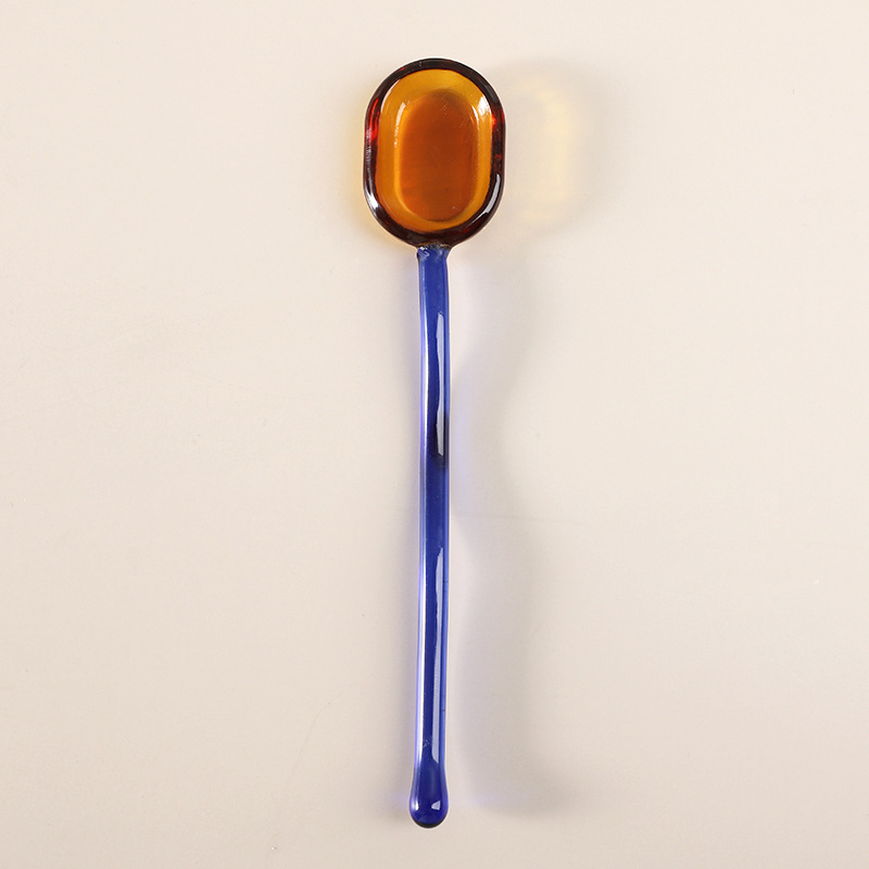 크리 에이 티브 우유 디저트 스푼 다채로운 목가적 인 투명 고온 방지 유리 스푼 귀여운 긴 손잡이 커피 교반 스푼스토어 가기