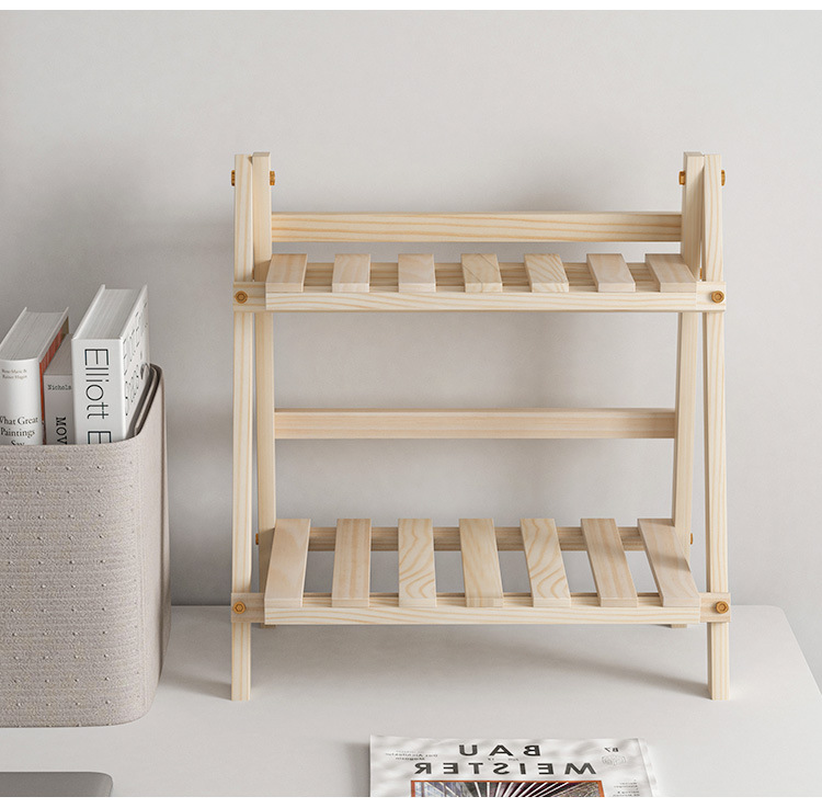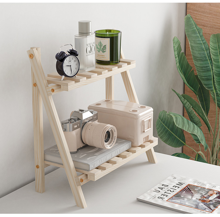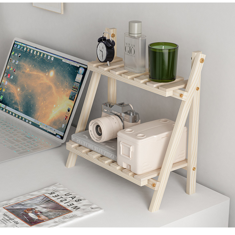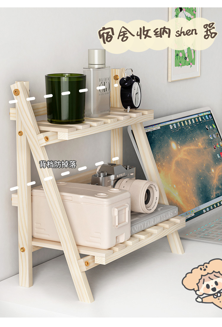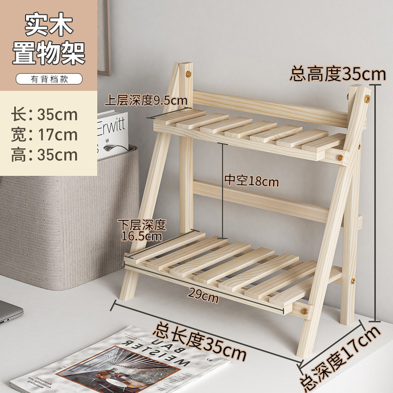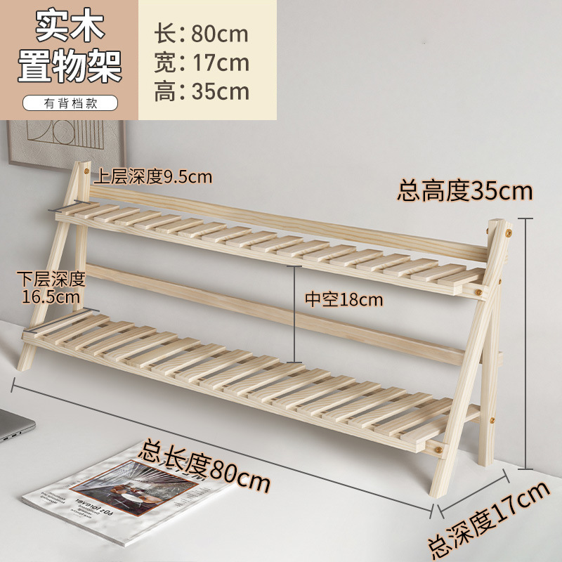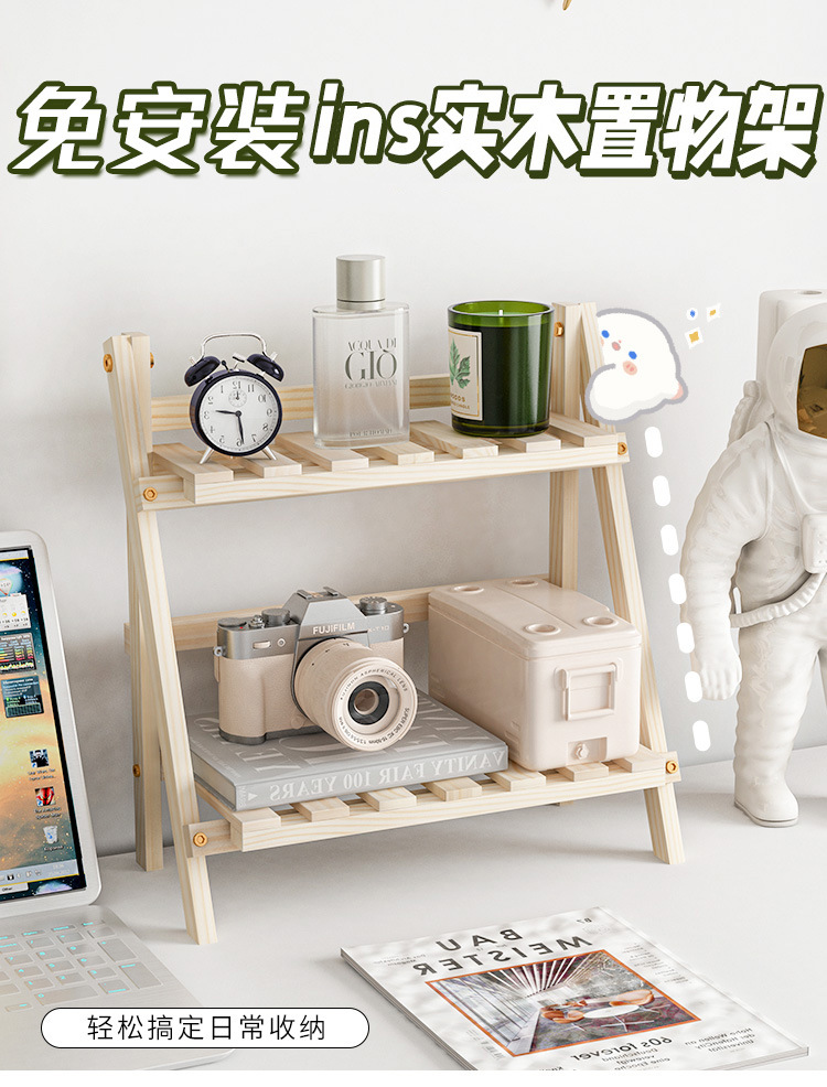Ins 설치가 필요없는 단단한 나무 더블 레이어 데스크탑 스토리지 랙 기숙사 침실 사무실 책상 접이식 스토리지 랙 정리 랙