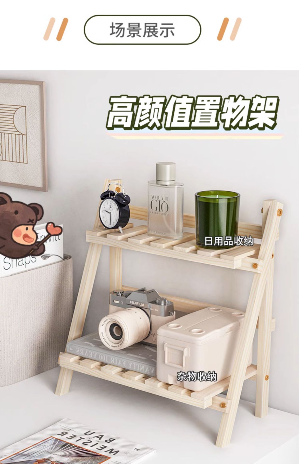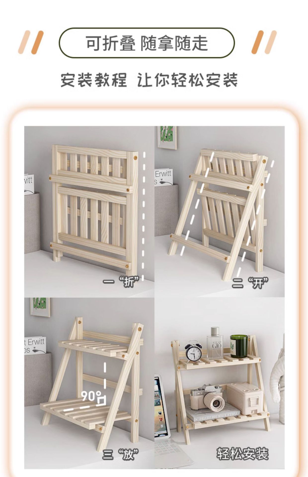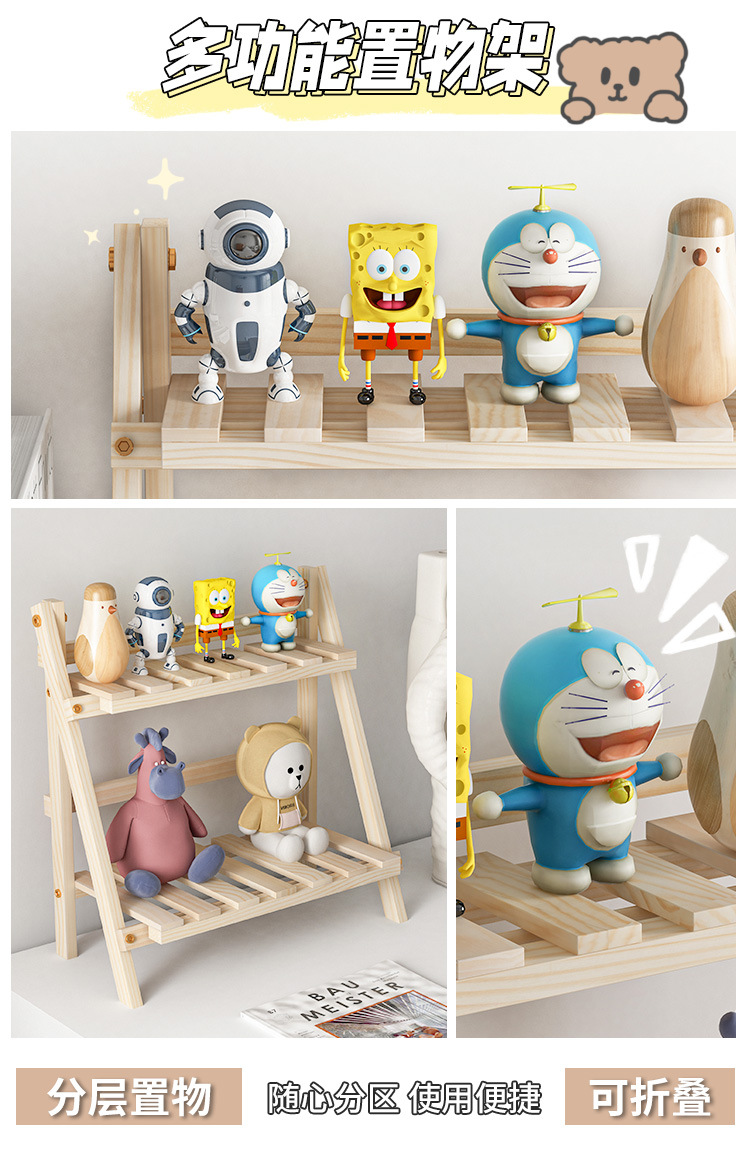 Ins 설치가 필요없는 단단한 나무 더블 레이어 데스크탑 스토리지 랙 기숙사 침실 사무실 책상 접이식 스토리지 랙 정리 랙스토어 가기