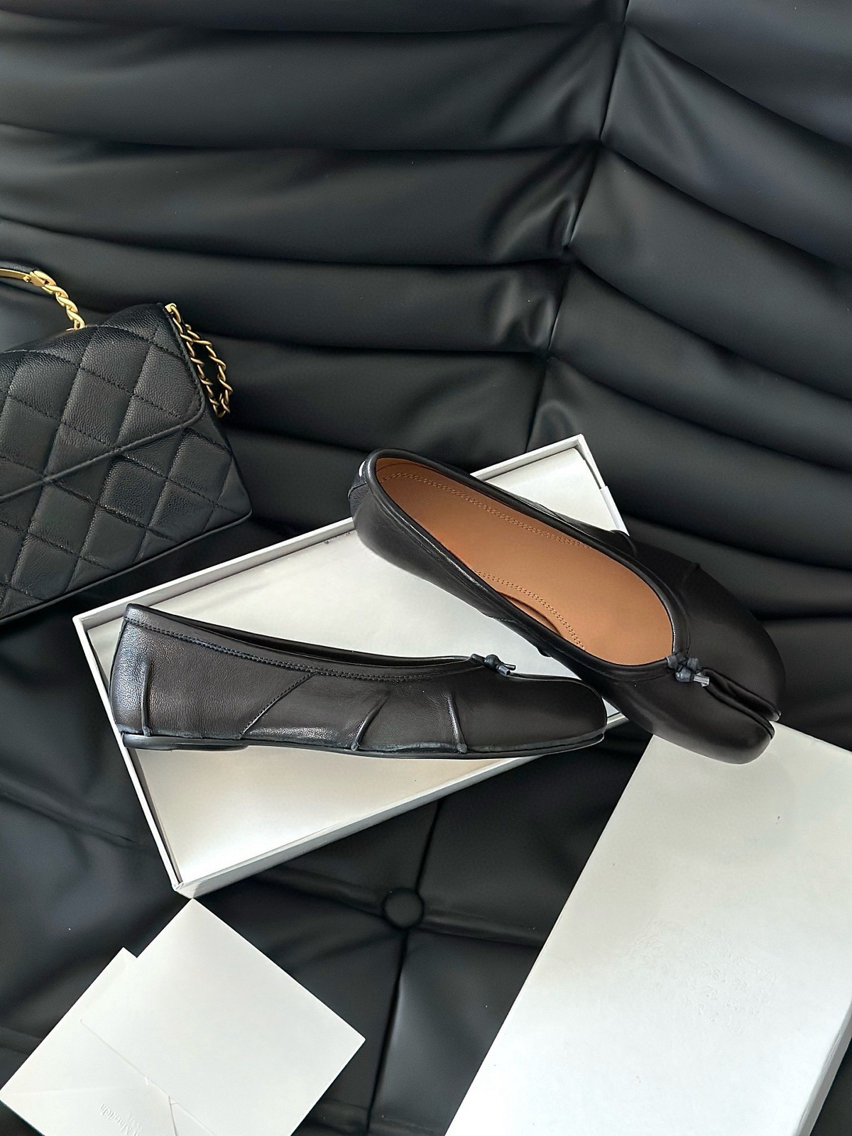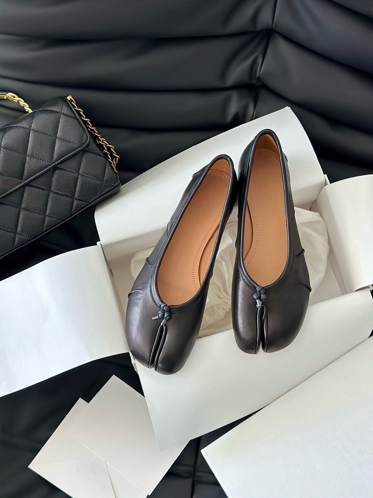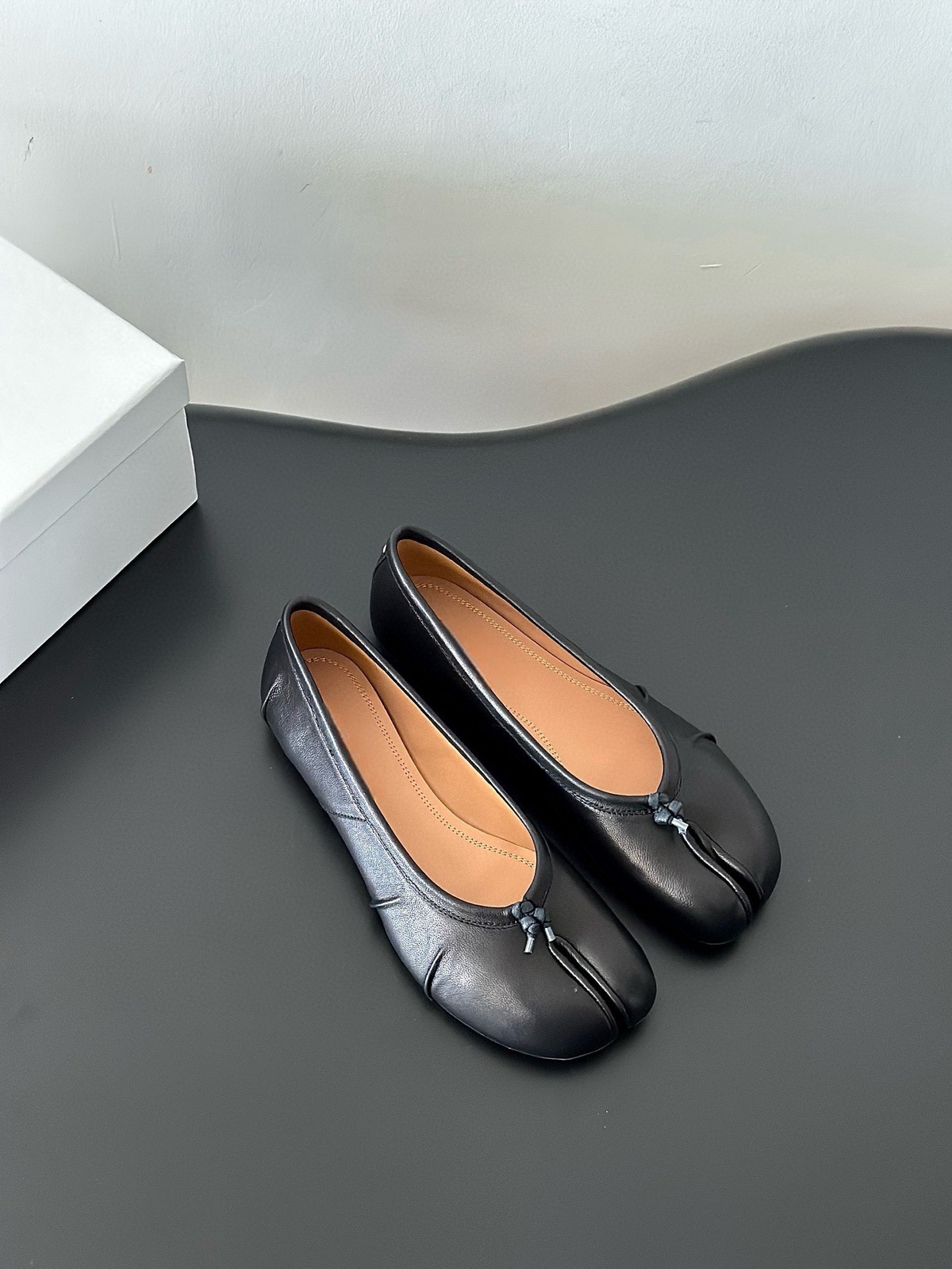 새로운 스타일의 소가죽 m6 플리츠 발레 슈즈, 탭 스플릿 토 슈즈, 피그 히프 슈즈, 슬립온, 얕은 굽, 틈새 스타일 여성용스토어 가기