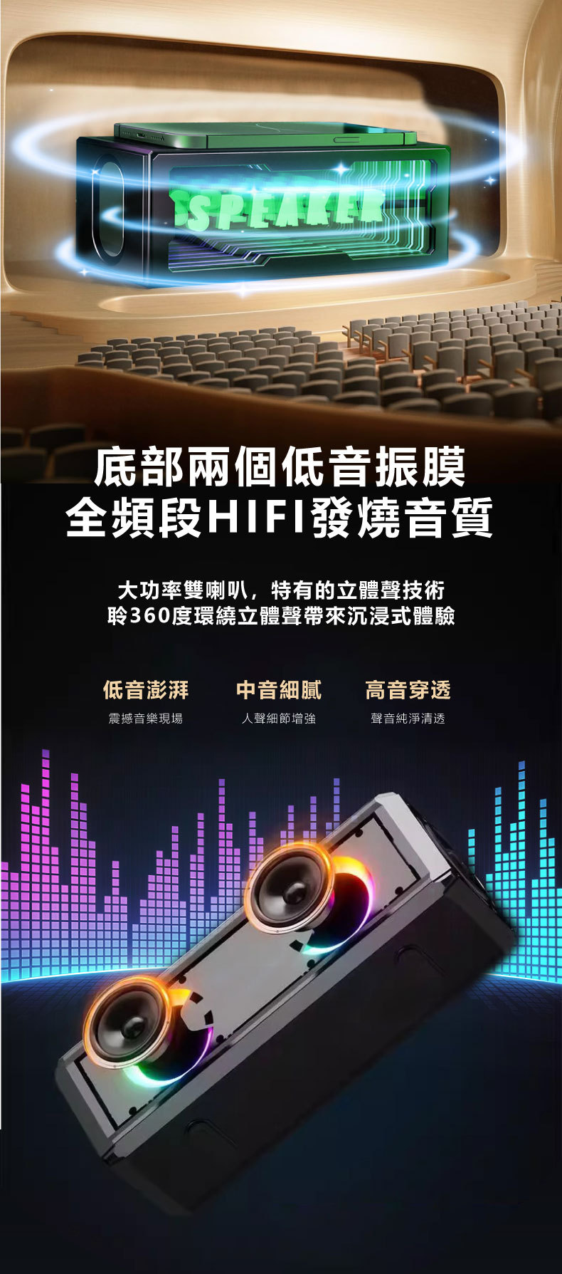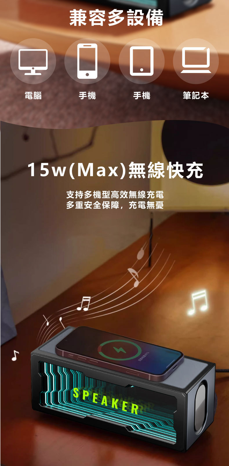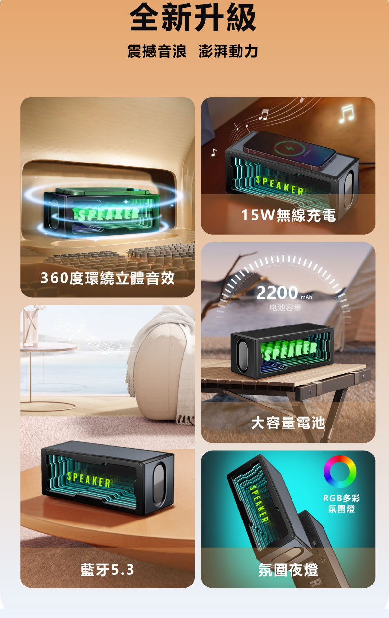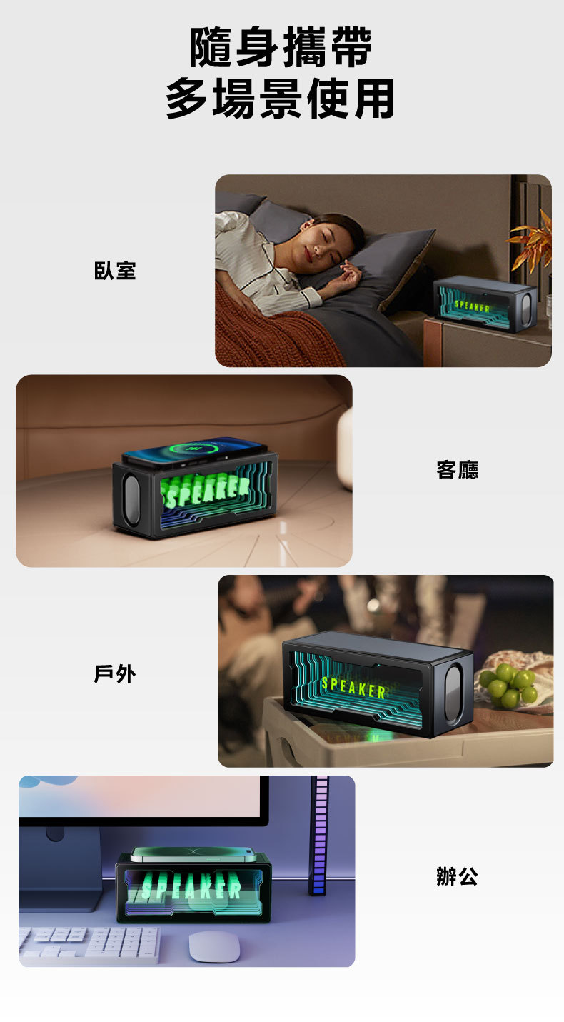 私模创意新品智能深渊镜蓝牙音箱15W无线充双喇叭炫彩家用小音响