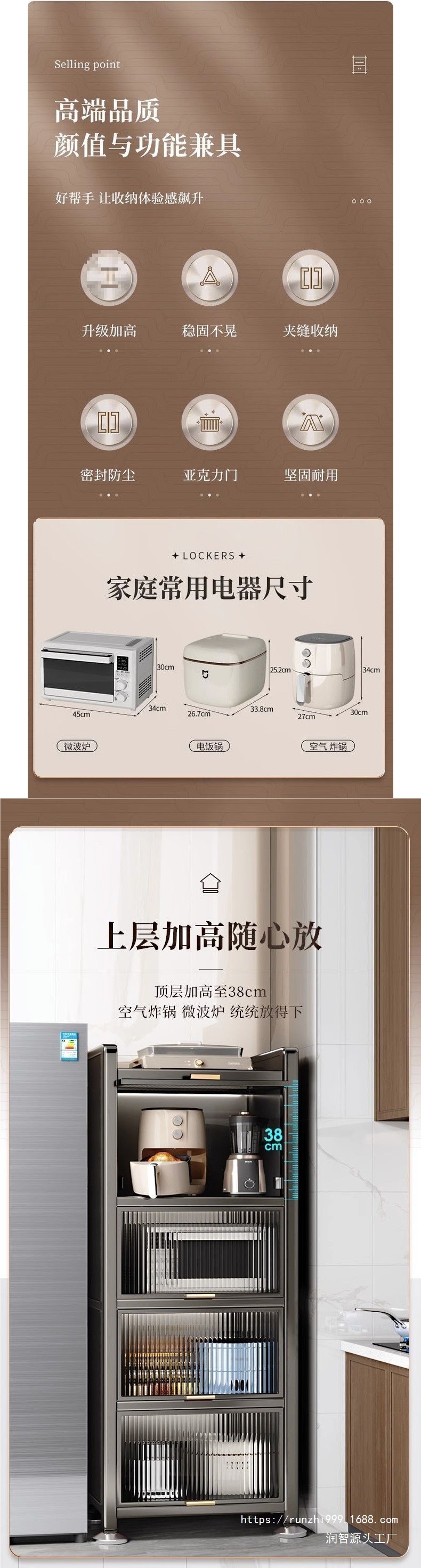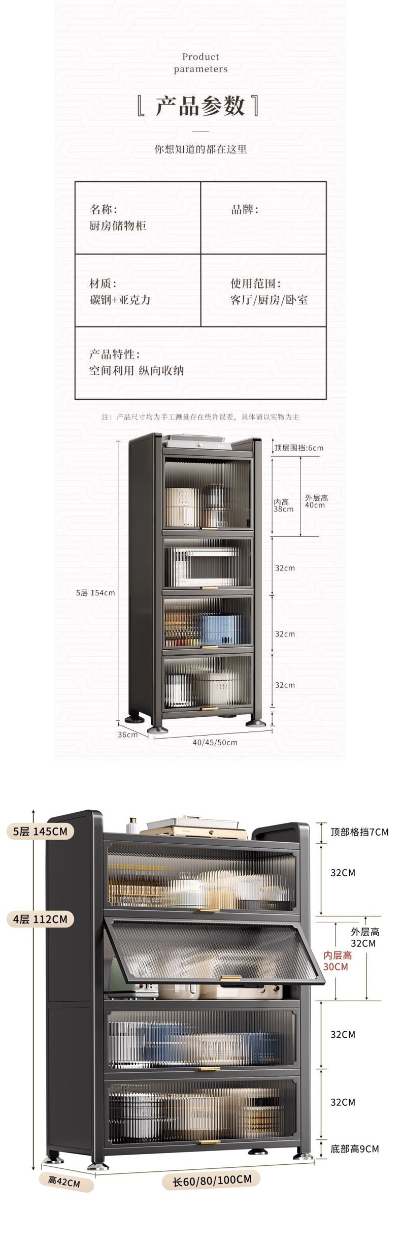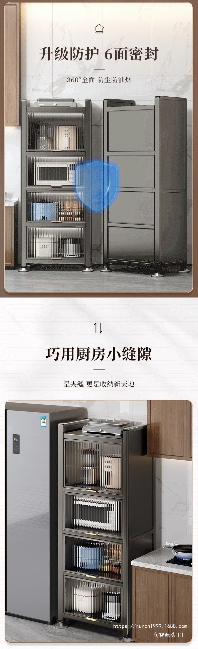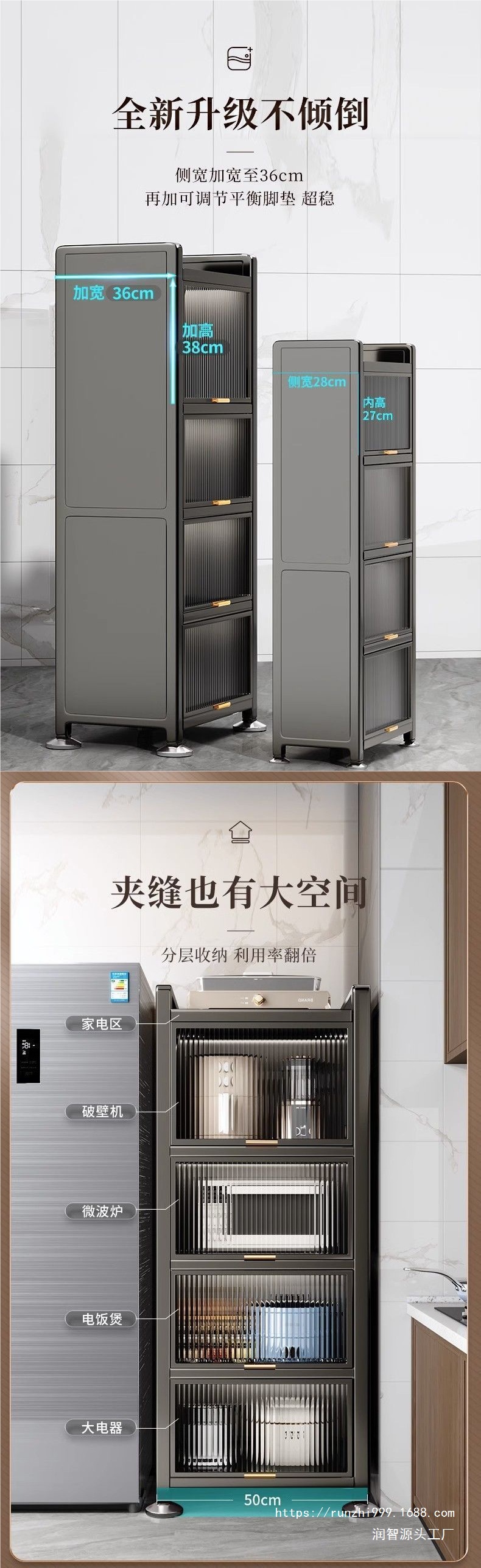 주방랙, 전자레인지 수납장, 다층 수납장, 다기능 캐비닛, 냉장고 슬롯형 높이 캐비닛