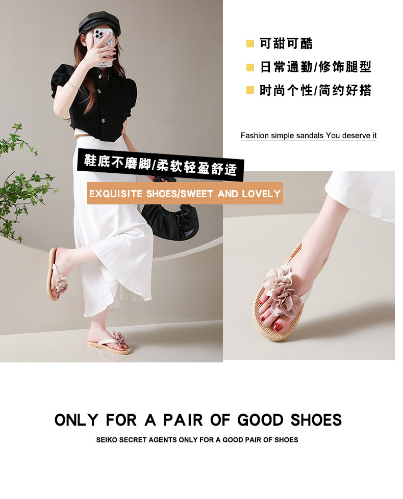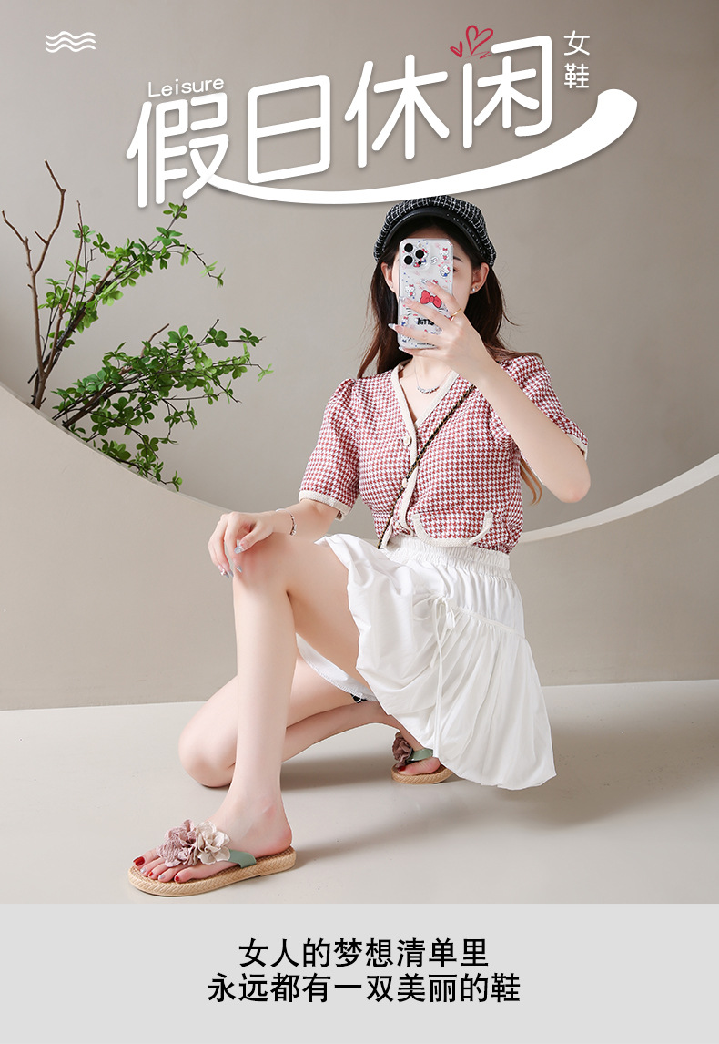 여름에 스커트와 함께 착용할 수 있는 여성용 요정 스타일 꽃 슬리퍼, 캐주얼 슬리퍼, 해변 슬리퍼스토어 가기
