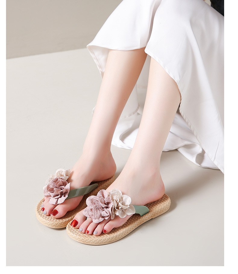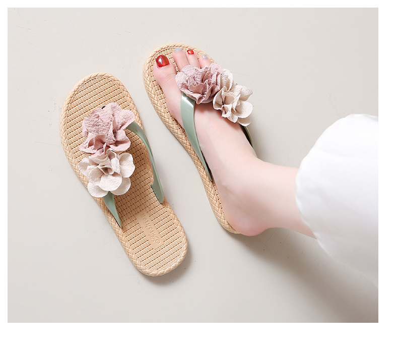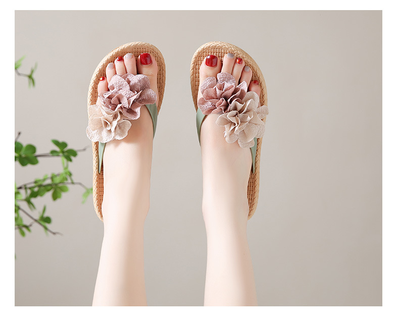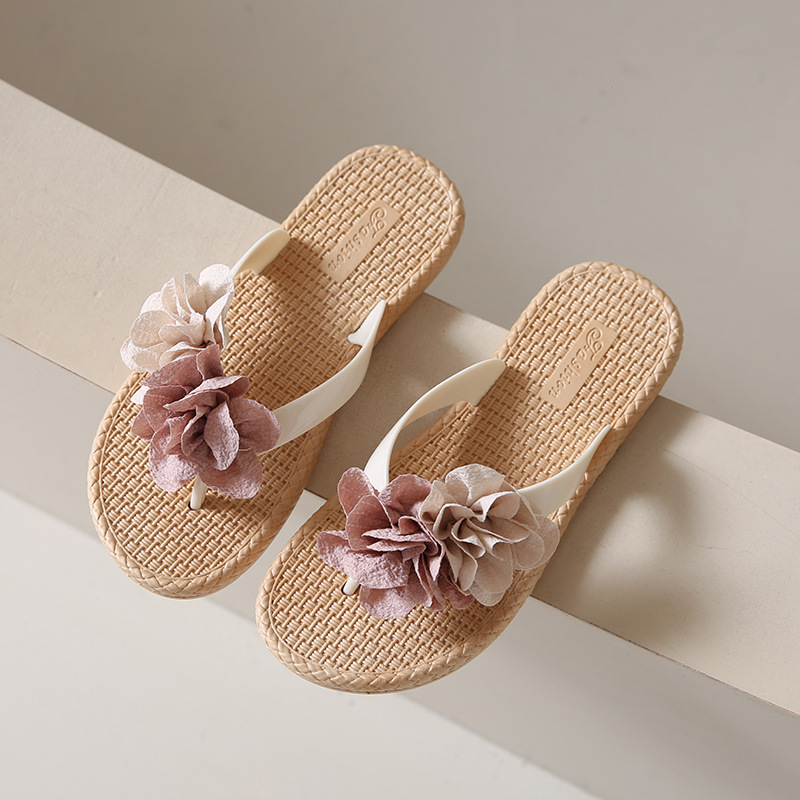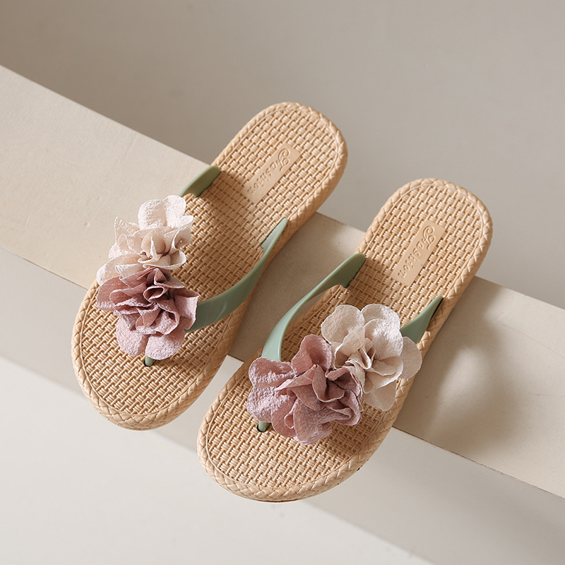 여름에 스커트와 함께 착용할 수 있는 여성용 요정 스타일 꽃 슬리퍼, 캐주얼 슬리퍼, 해변 슬리퍼