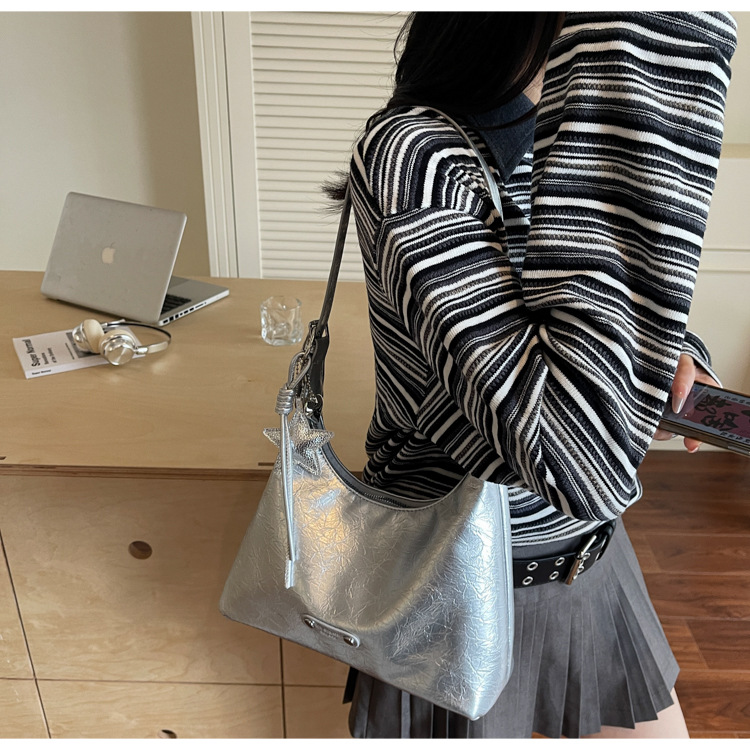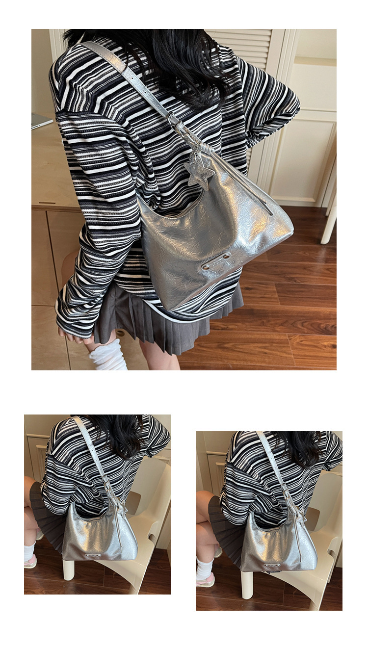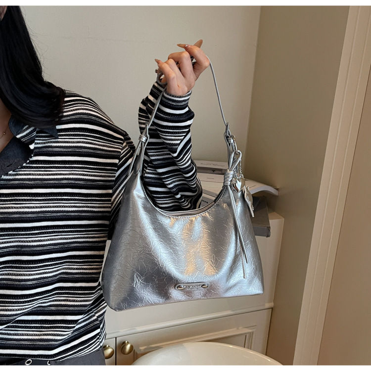 니치 디자인 통근 숄더백 새로운 핫걸 실버 대용량 크로스백 트렌디한 여성용 다용도 겨드랑이 가방