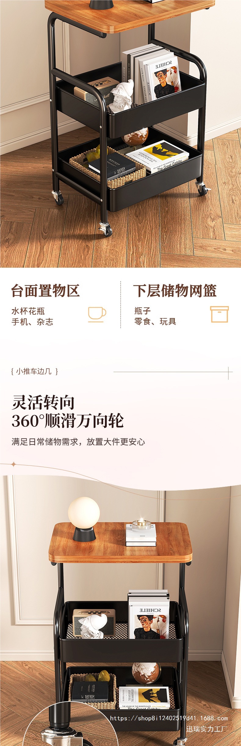 이동식 소형 테이블 수납 선반 두꺼운 다층 수납 선반 기숙사 임대 주택 가정용 다기능 간이 수납 선반