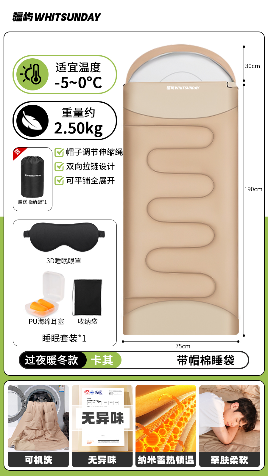 • [야외 야간 방한 모델] 2.5kg 카키 + 수면 무음 세트 (방수 원단/무료 수납 가방)