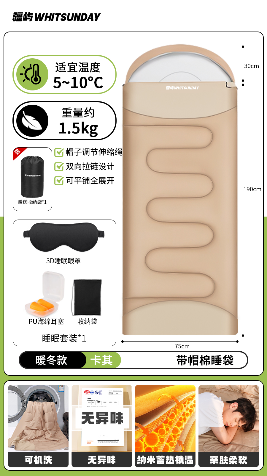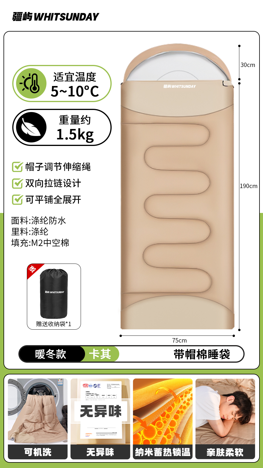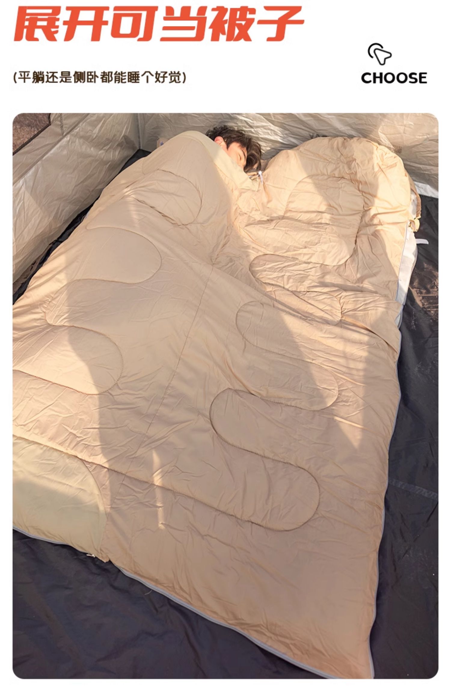 Jiangyu 침낭 성인 야외 캠핑 겨울 두꺼운 방한 사계절 사무실 이불 싱글 및 더블스토어 가기