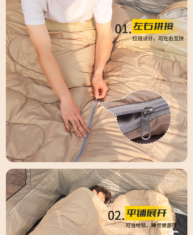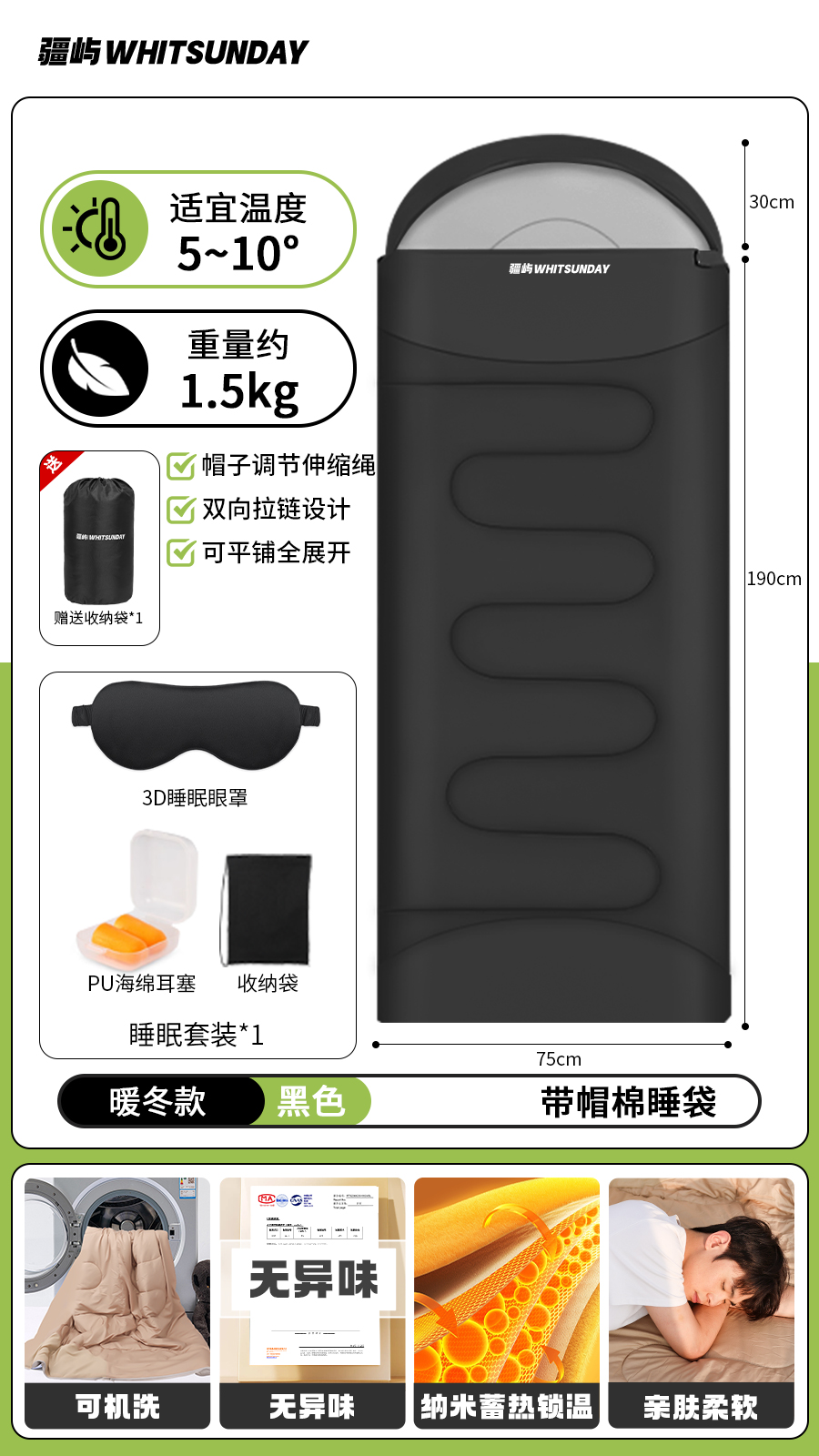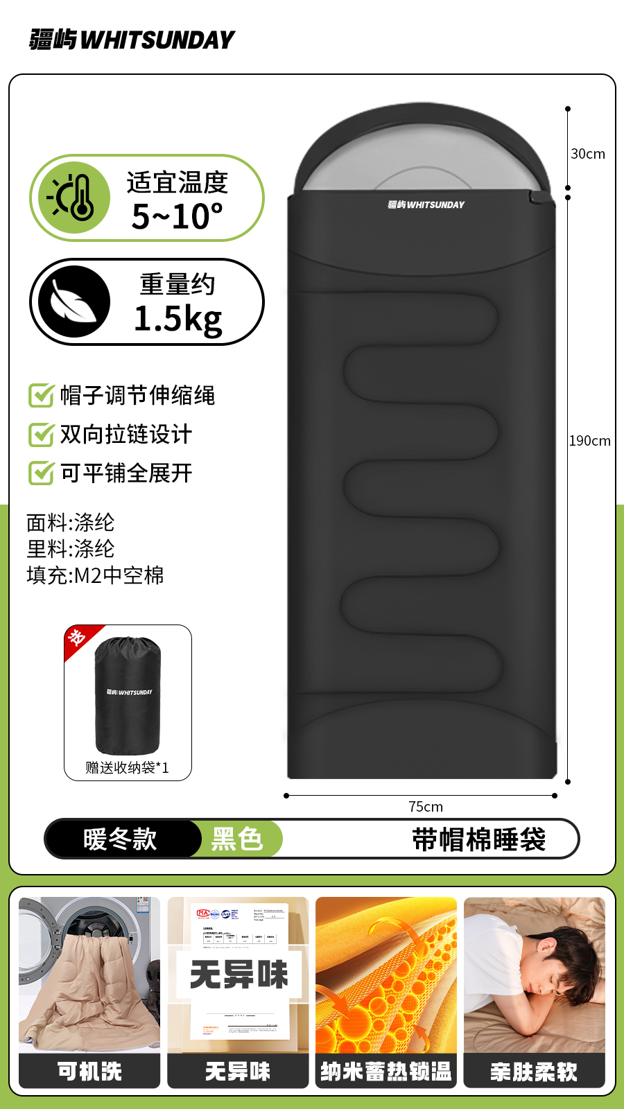 Jiangyu 침낭 성인 야외 캠핑 겨울 두꺼운 방한 사계절 사무실 이불 싱글 및 더블스토어 가기