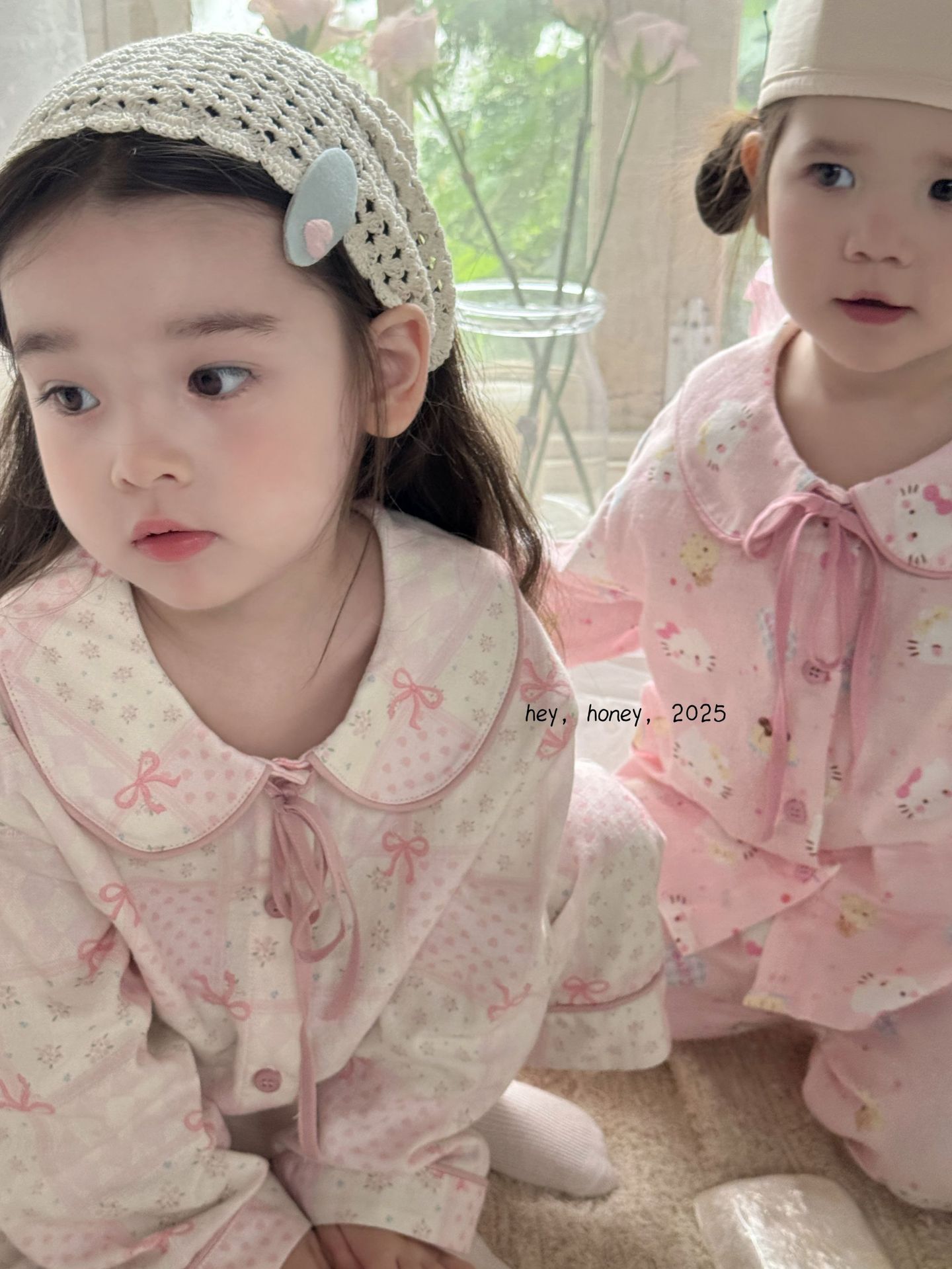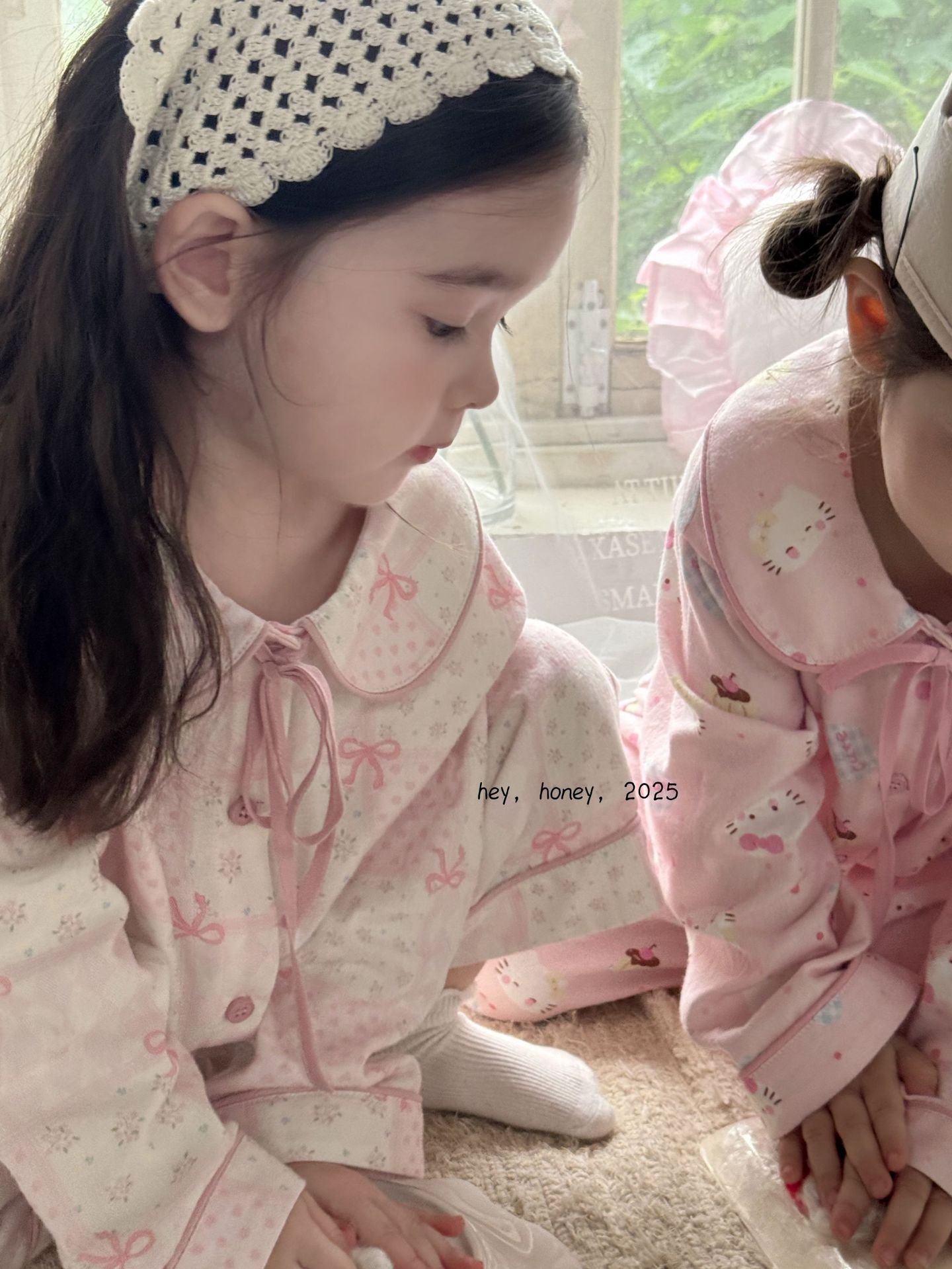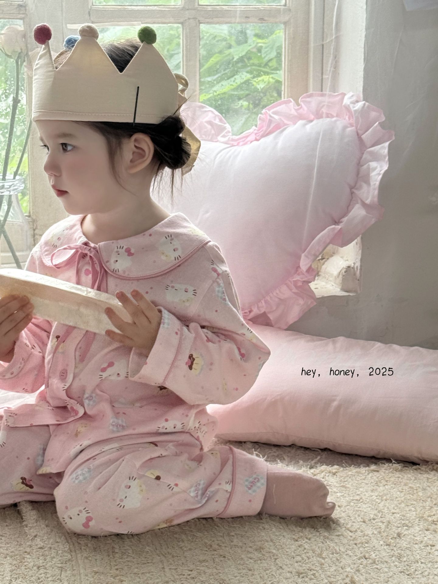 Heyhoney 크고 작은 롤 25 봄과 가을 소녀 홈웨어 긴팔 얇은 잠옷 세트 귀여운 만화 스타일스토어 가기