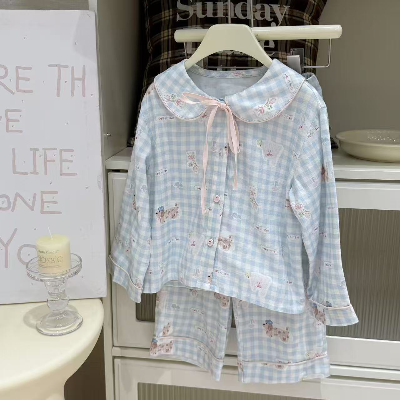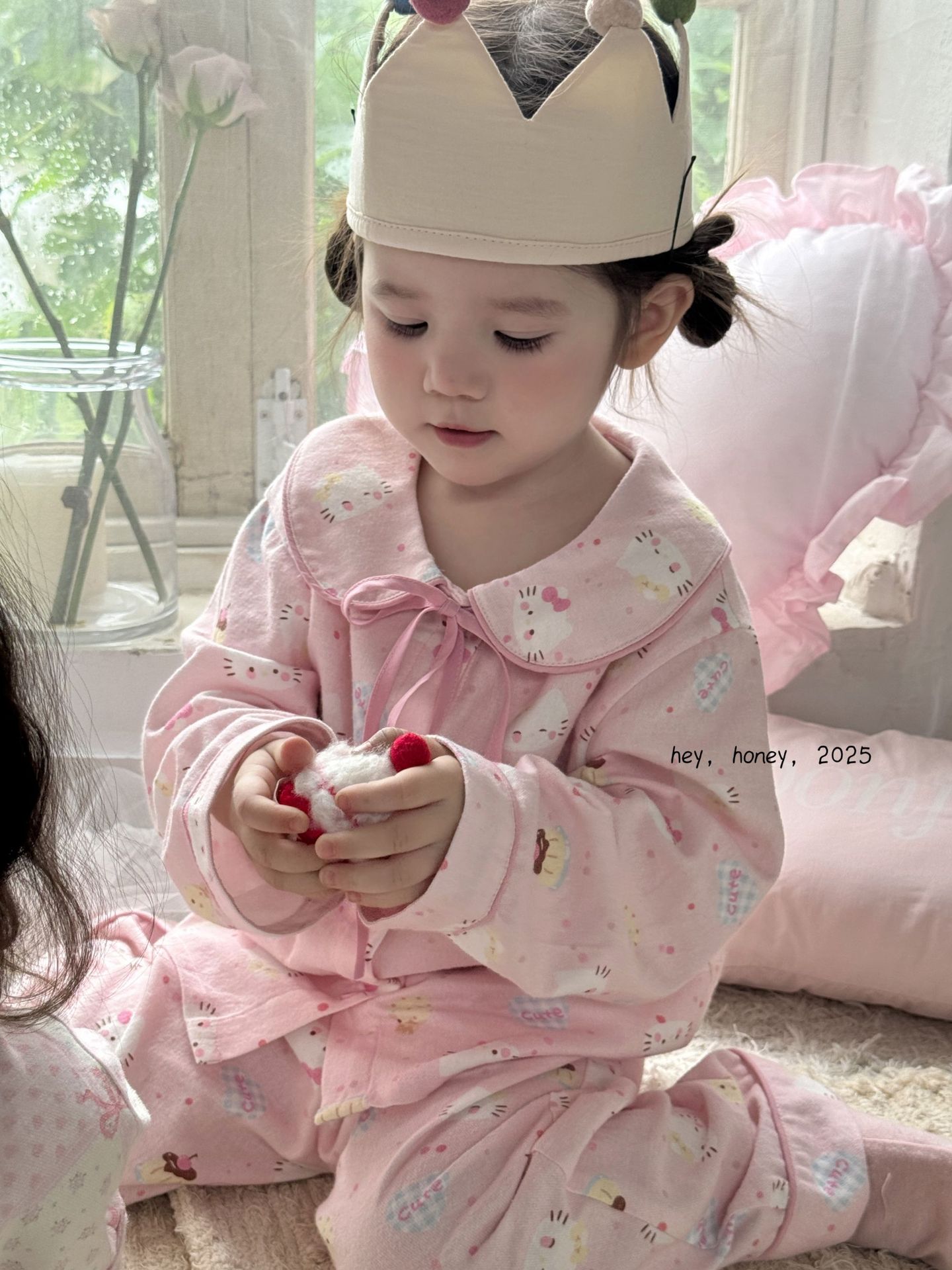 Heyhoney 크고 작은 롤 25 봄과 가을 소녀 홈웨어 긴팔 얇은 잠옷 세트 귀여운 만화 스타일