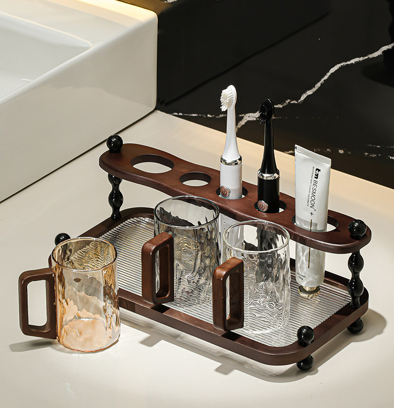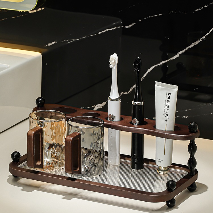 가벼운 고급 복고풍 전동 칫솔 보관함 욕실 세면대 유리 구강 세정제 컵 칫솔질 컵 홀더 세트