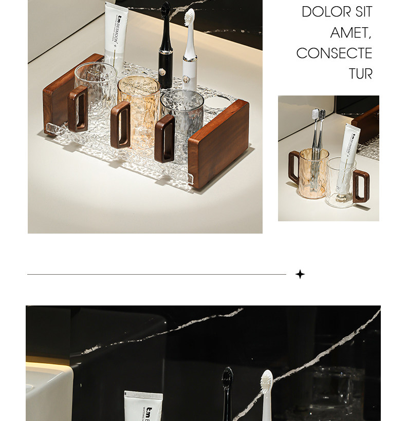 • 원목 손잡이 물 골판지 컵(회색 1개, 호박색 1개) + 이중 원목 칫솔 홀더