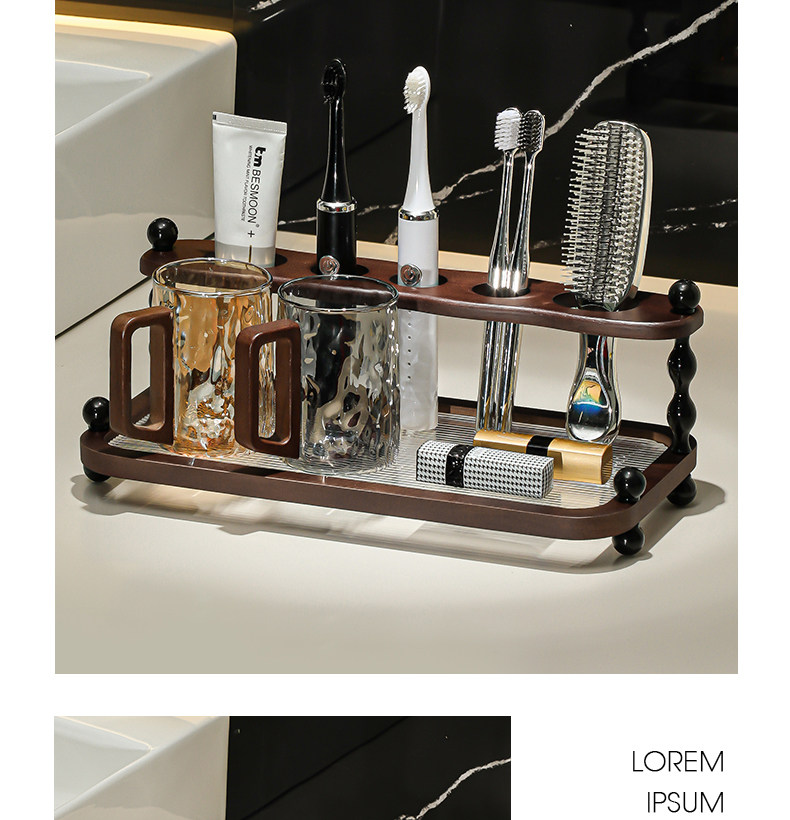 • 더블 레이어 단단한 나무 칫솔 홀더