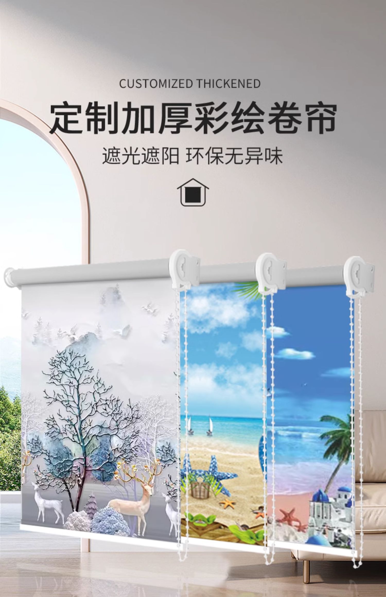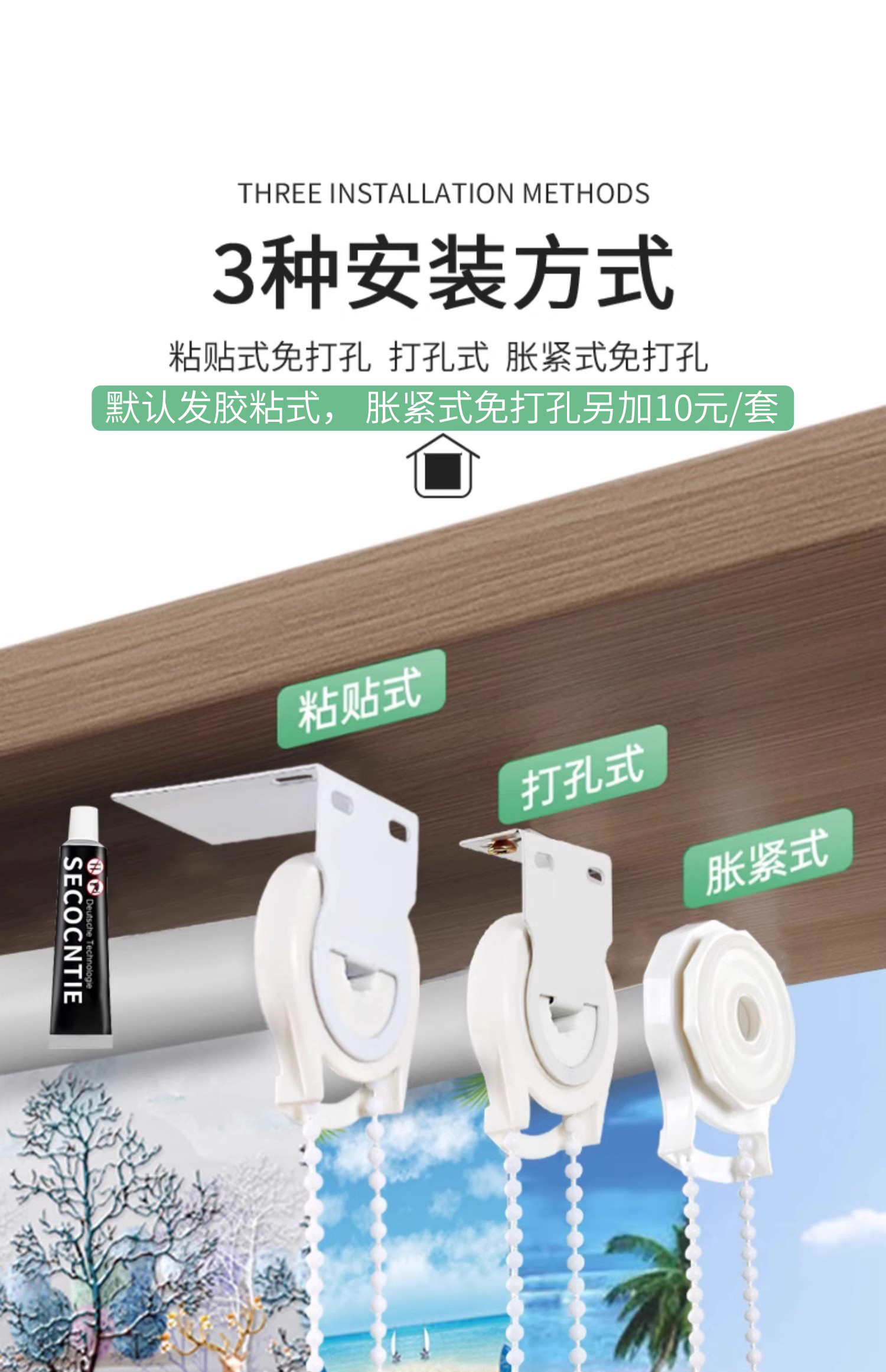 커튼 롤러 블라인드 완전 차광 2025 새로운 차양 리프팅 펀치 프리 설치 주방 욕실 침실 롤링스토어 가기