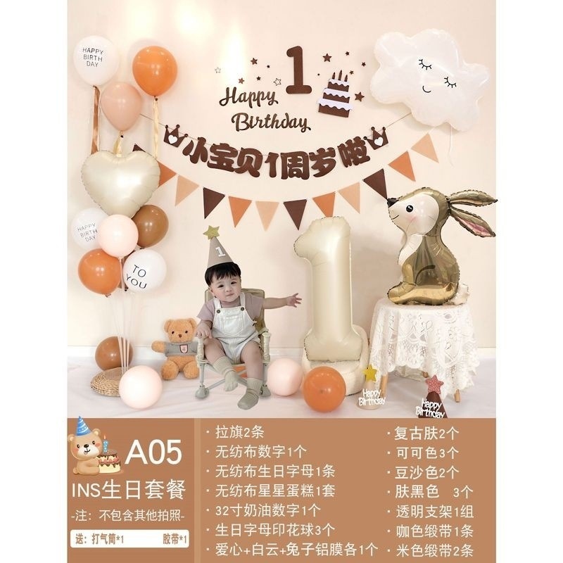 남녀 아기의 첫 번째 생일 배경 벽 풍선 생일 장식 한국 풍선 패키지 도매 공장스토어 가기