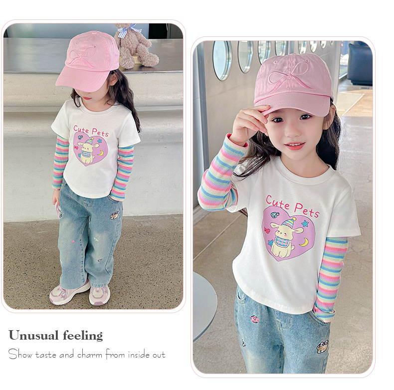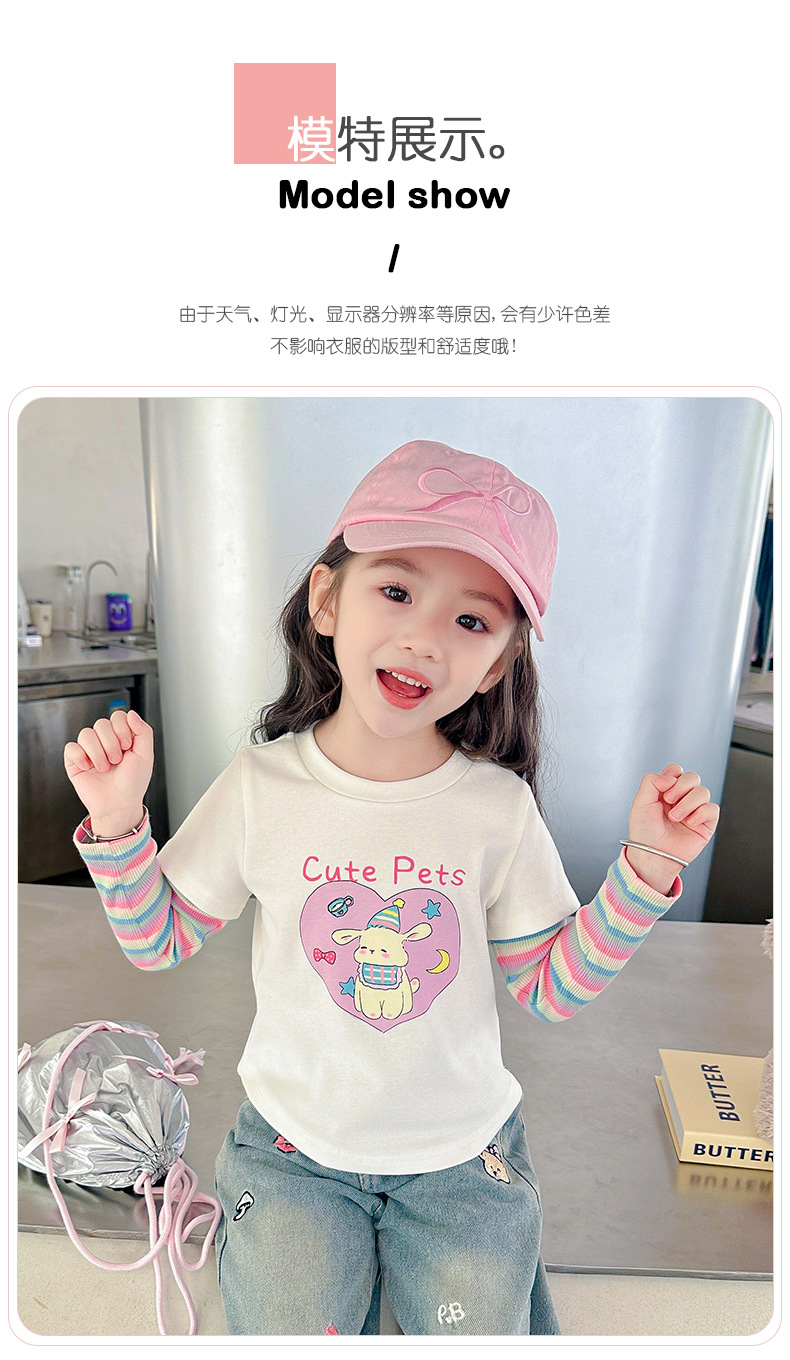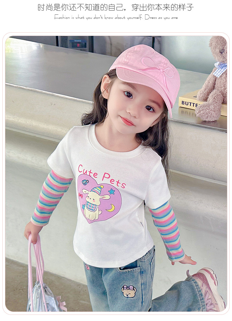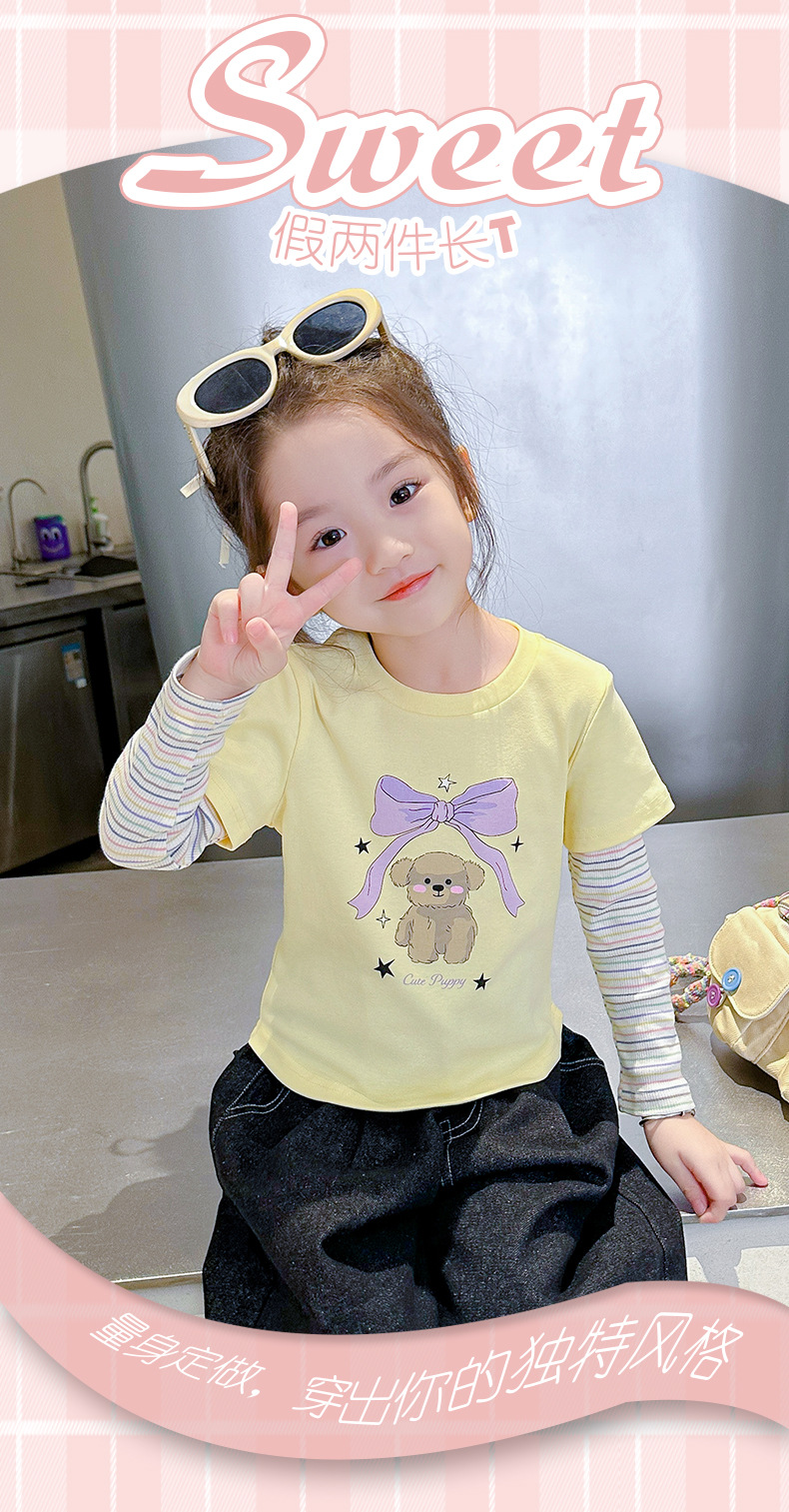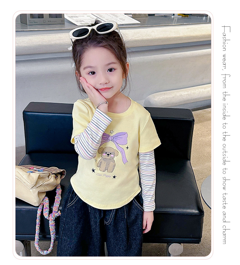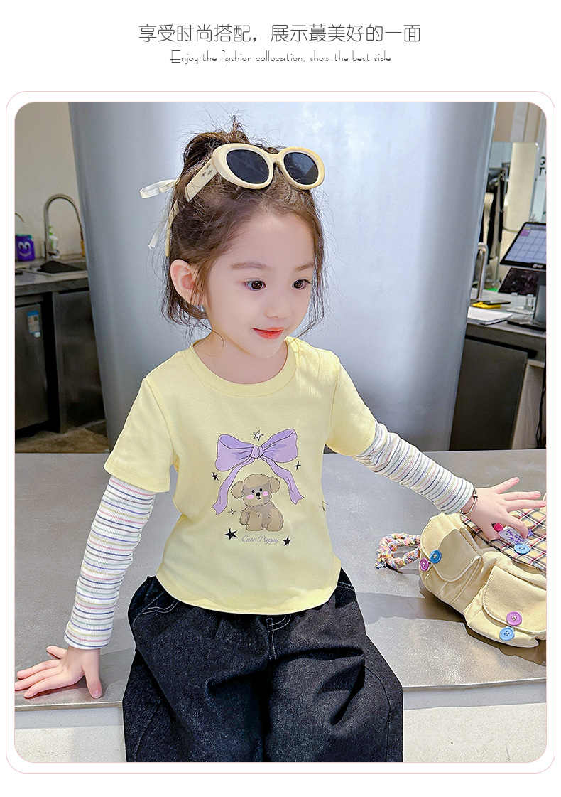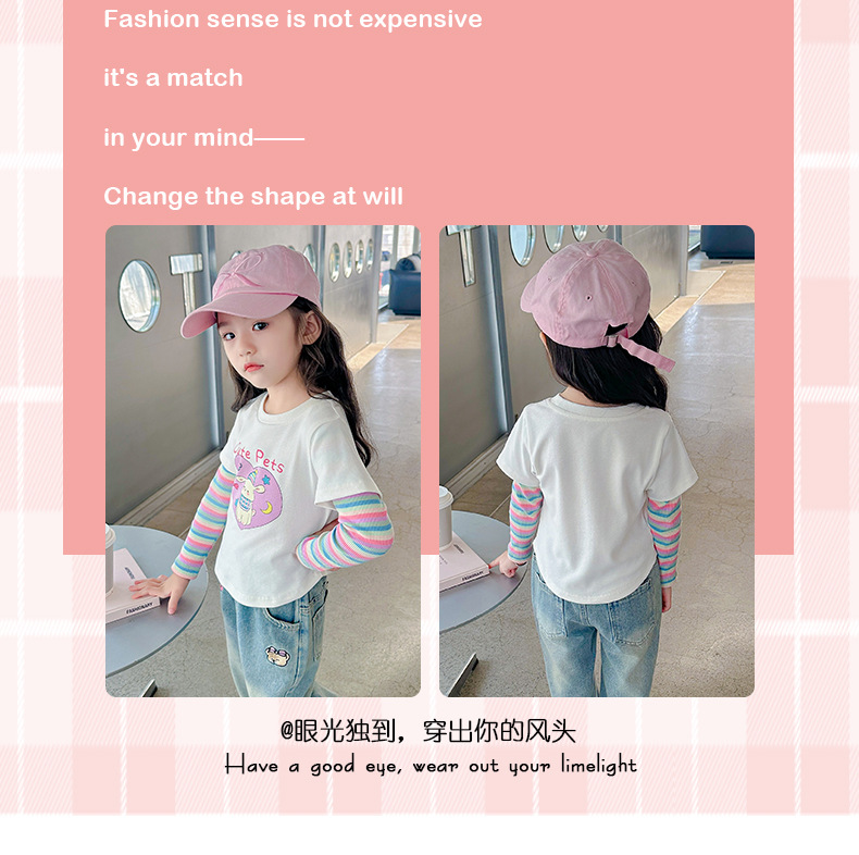 2026년 신상 봄 가을 여아 긴팔 티셔츠, 중소 어린이용, 세련되고 귀여운 상의, 이너웨어, 패셔너블하고 심플한 여성용스토어 가기