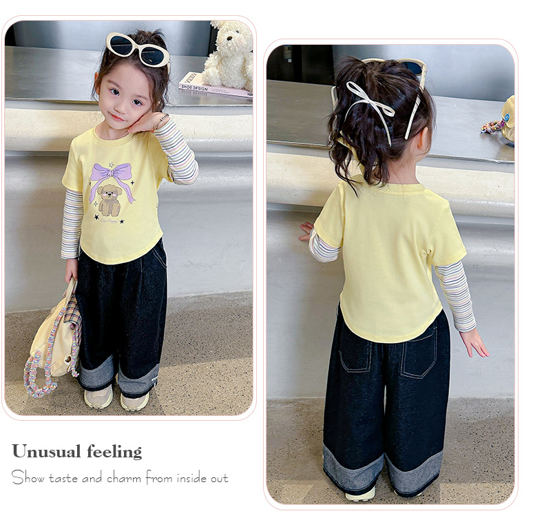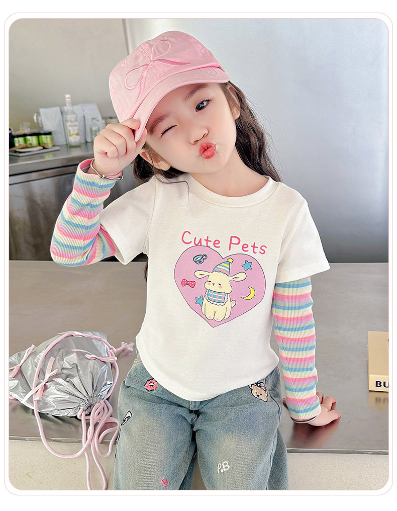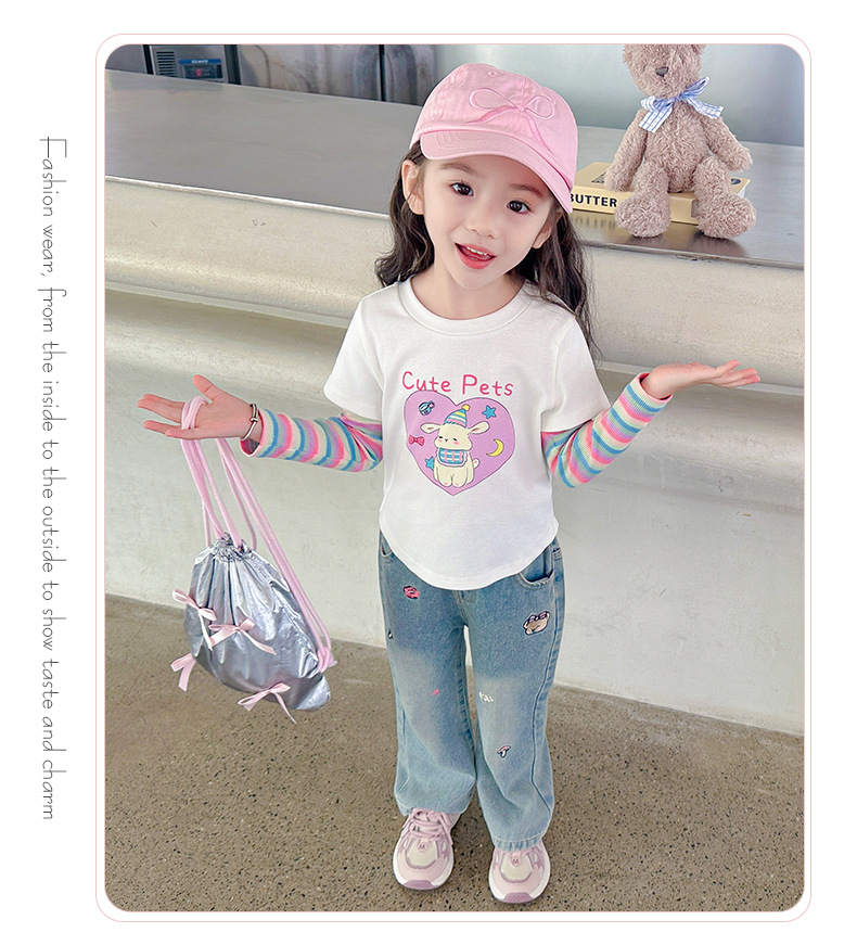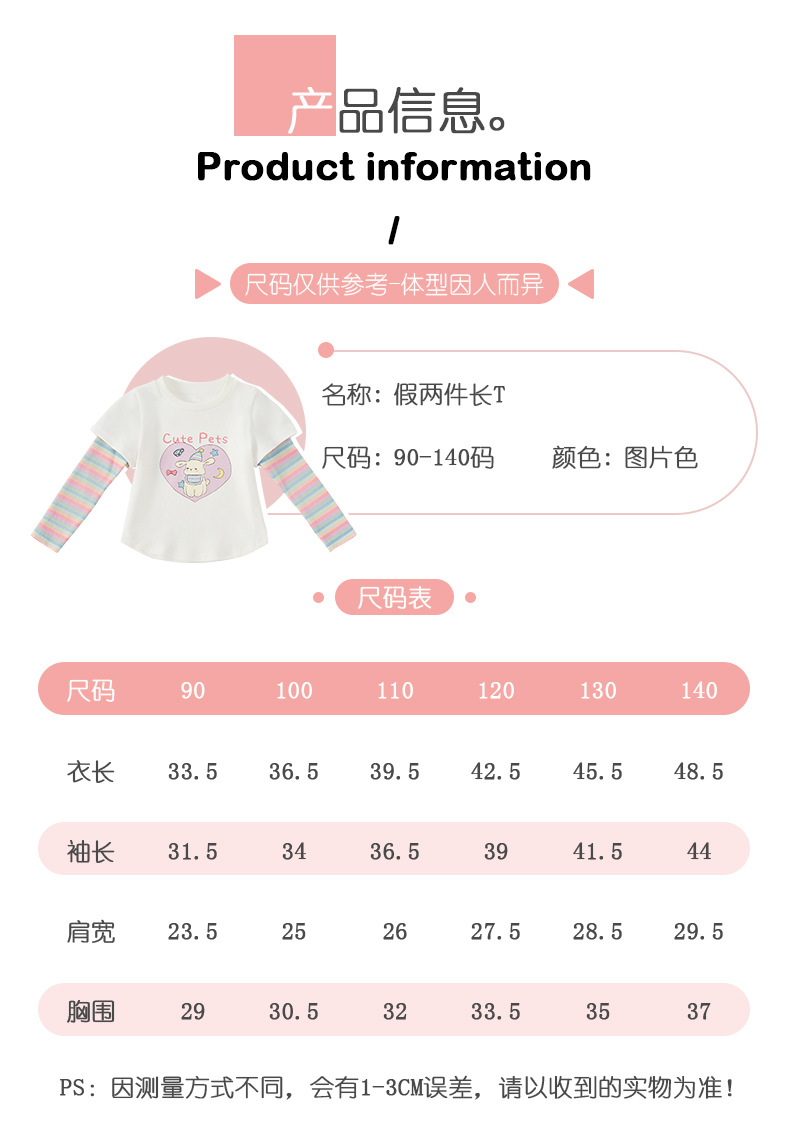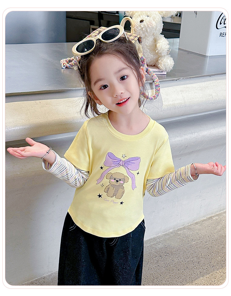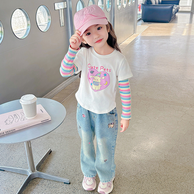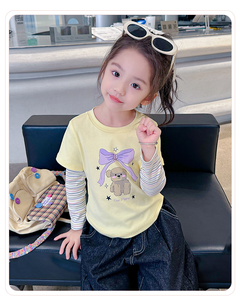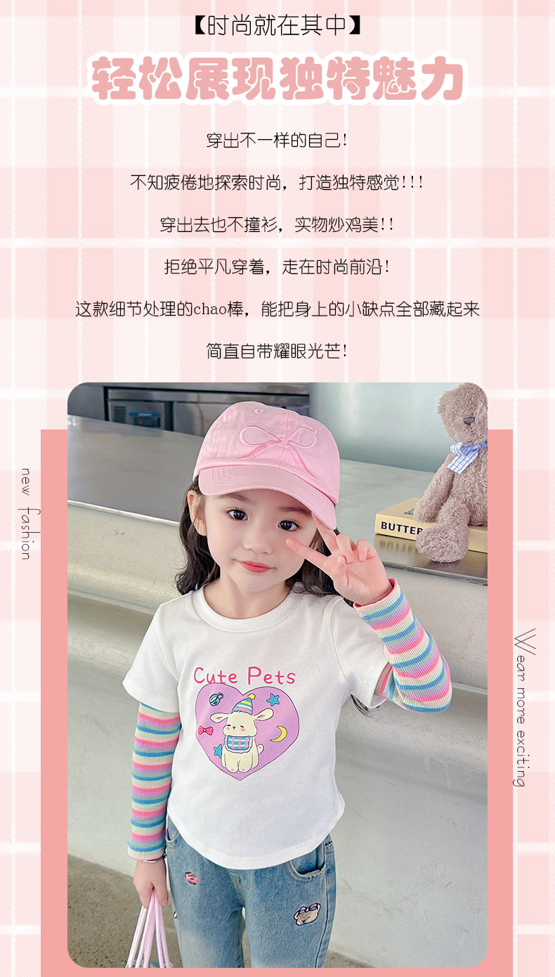 2026년 신상 봄 가을 여아 긴팔 티셔츠, 중소 어린이용, 세련되고 귀여운 상의, 이너웨어, 패셔너블하고 심플한 여성용스토어 가기