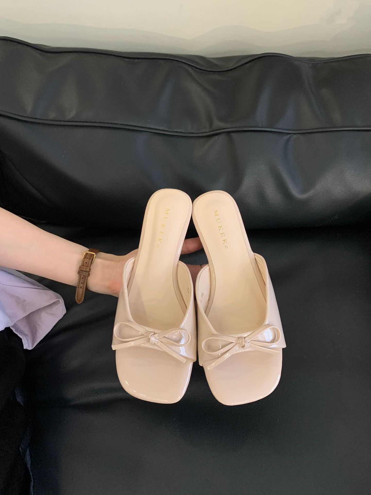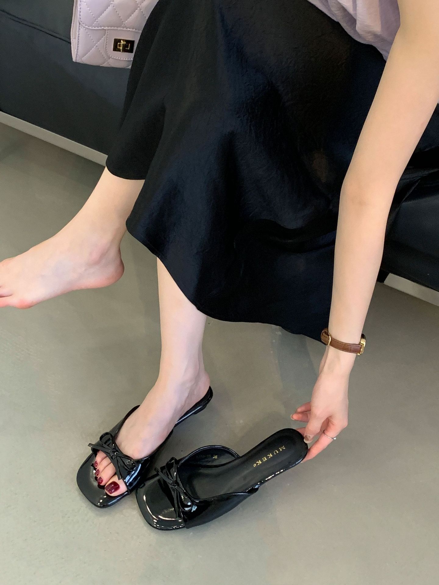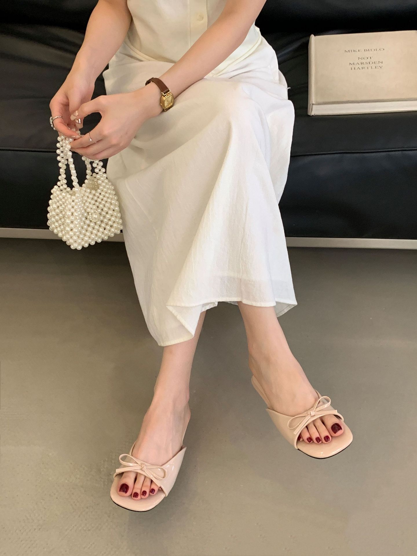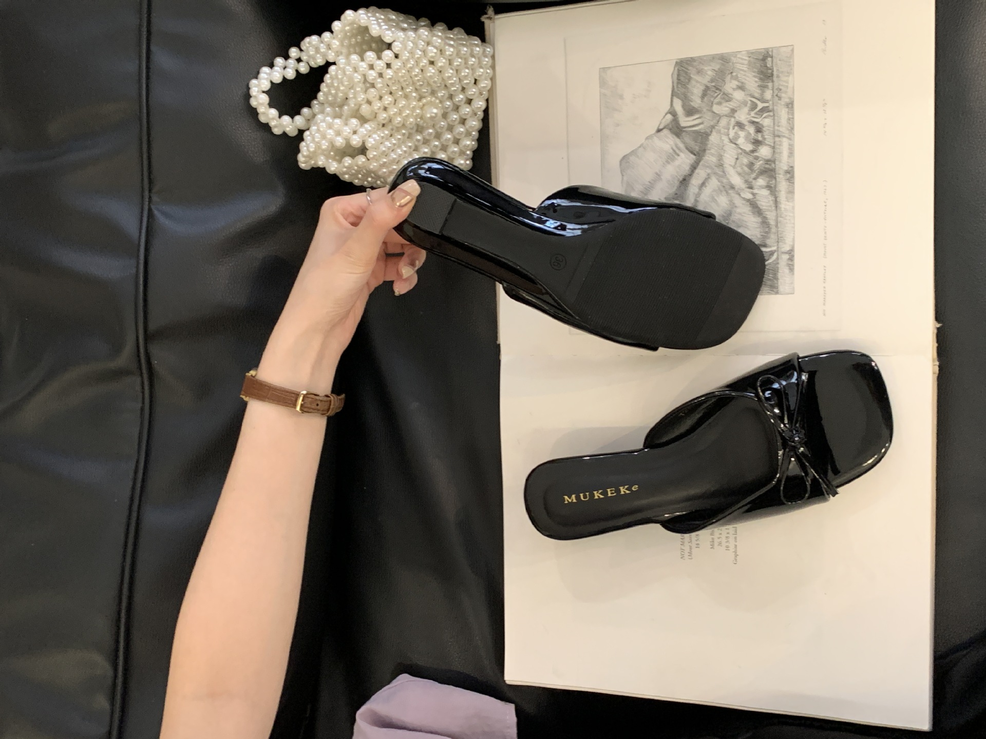 ~ 여성용 웨지힐 슬리퍼, 여름 신상 프렌치 레트로 헤링본 샌들, 페어리 스타일 휴가용 두꺼운 밑창 스퀘어 토 샌들