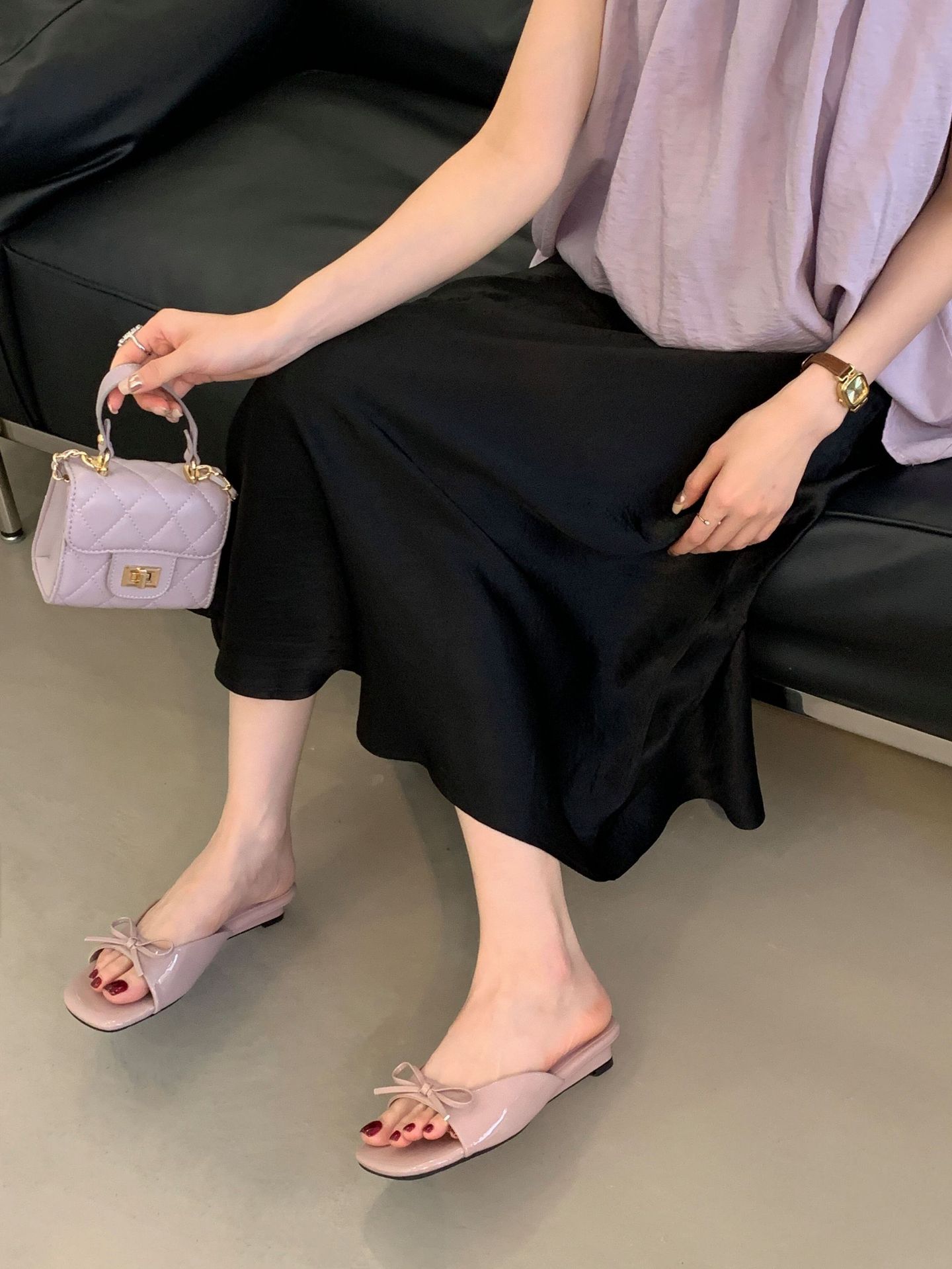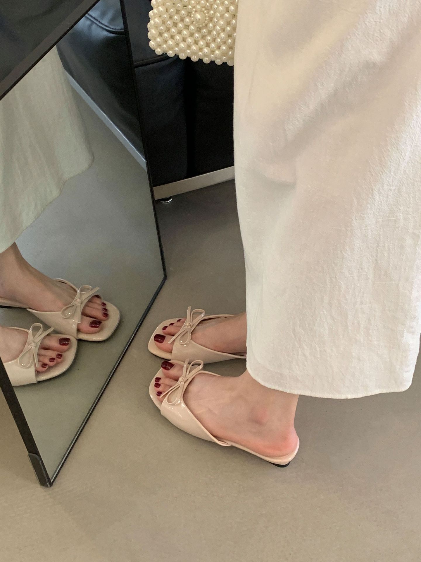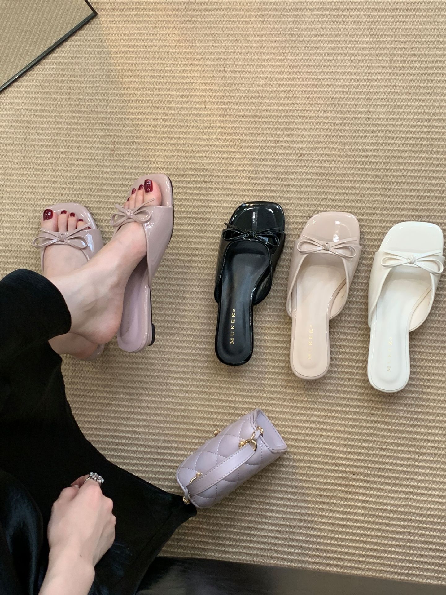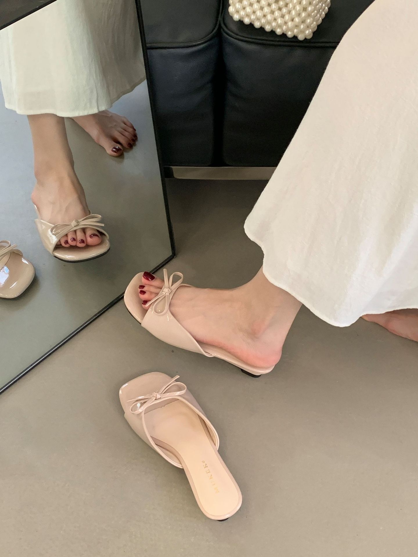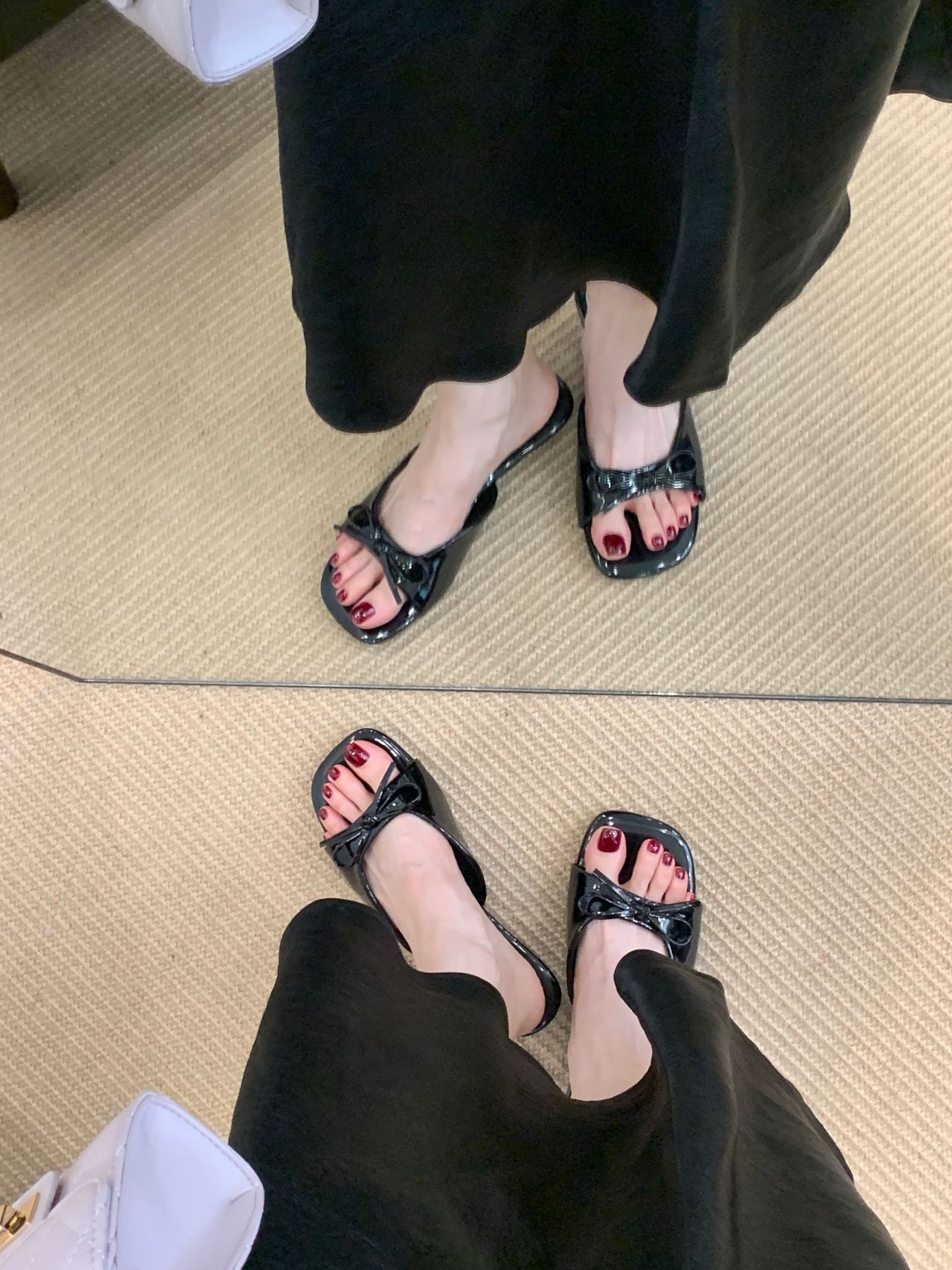 ~ 여성용 웨지힐 슬리퍼, 여름 신상 프렌치 레트로 헤링본 샌들, 페어리 스타일 휴가용 두꺼운 밑창 스퀘어 토 샌들